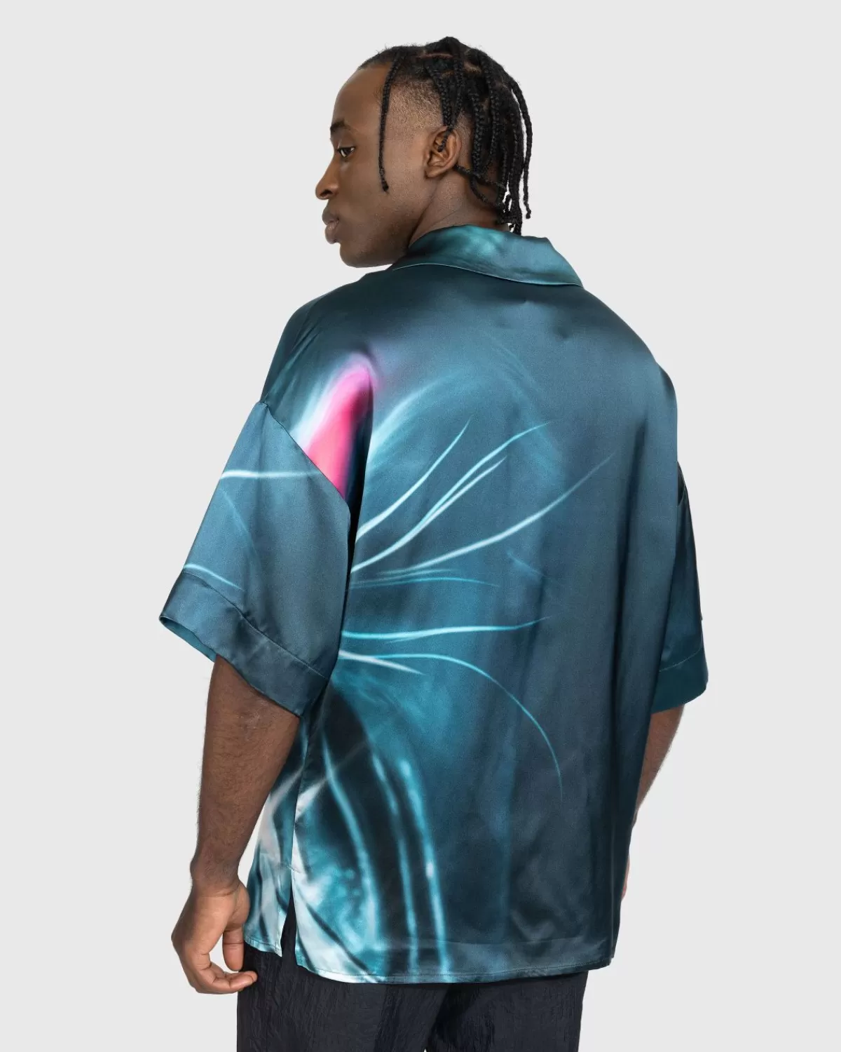 De Collectie ‘Raised By Wolves’ Van Gerrit Jacob Is Een Ode Aan Visuele Verhalen En Is Geïnspireerd Op Zijn Geboortestad En Beeldend Kunstenaar Jim Goldberg. Het Satijnen Overhemd Is Gedetailleerd Met Unieke Geprinte Airbrush-Graphics En Is Afgewerkt Met Een Klassieke Gespreide Kraag.