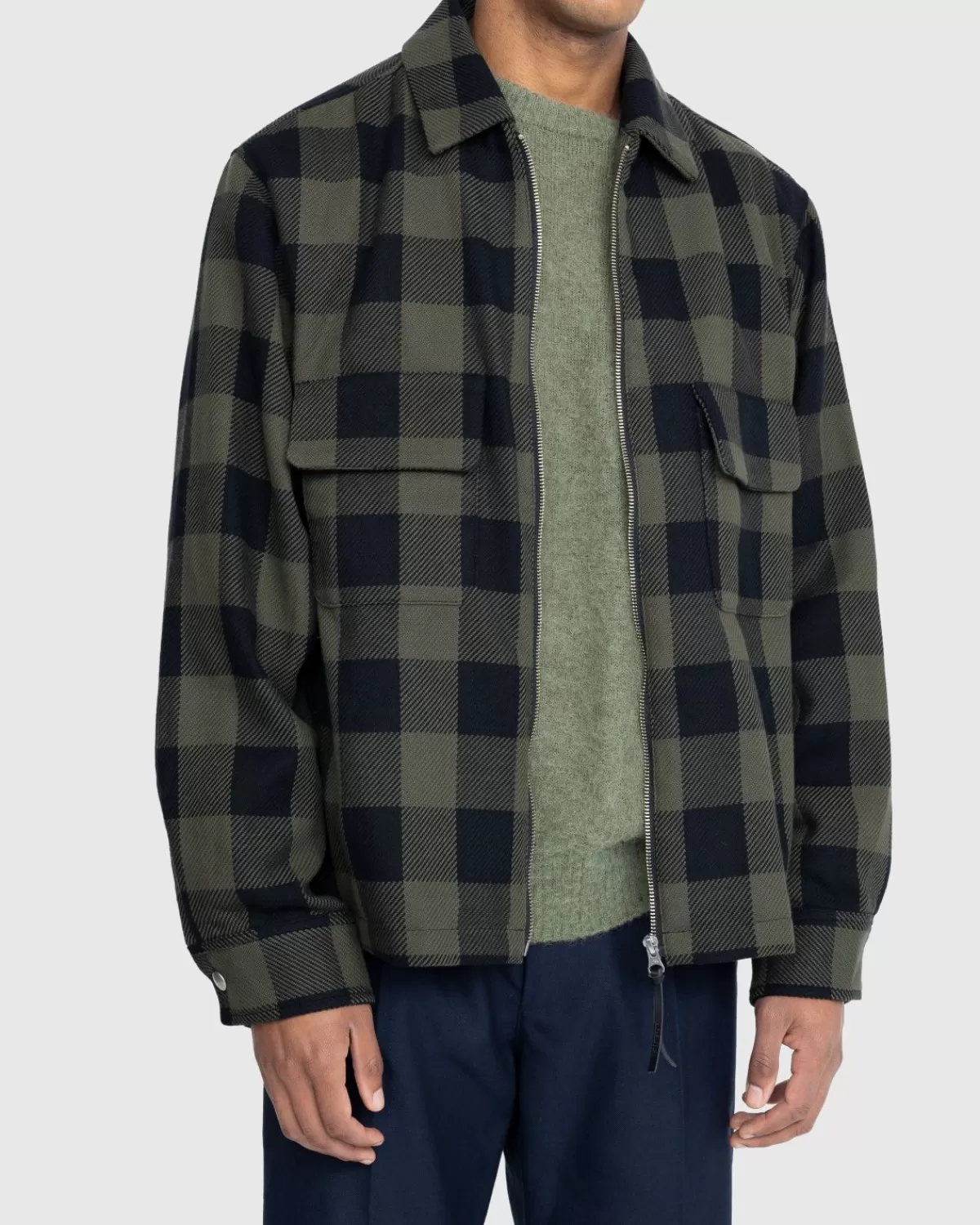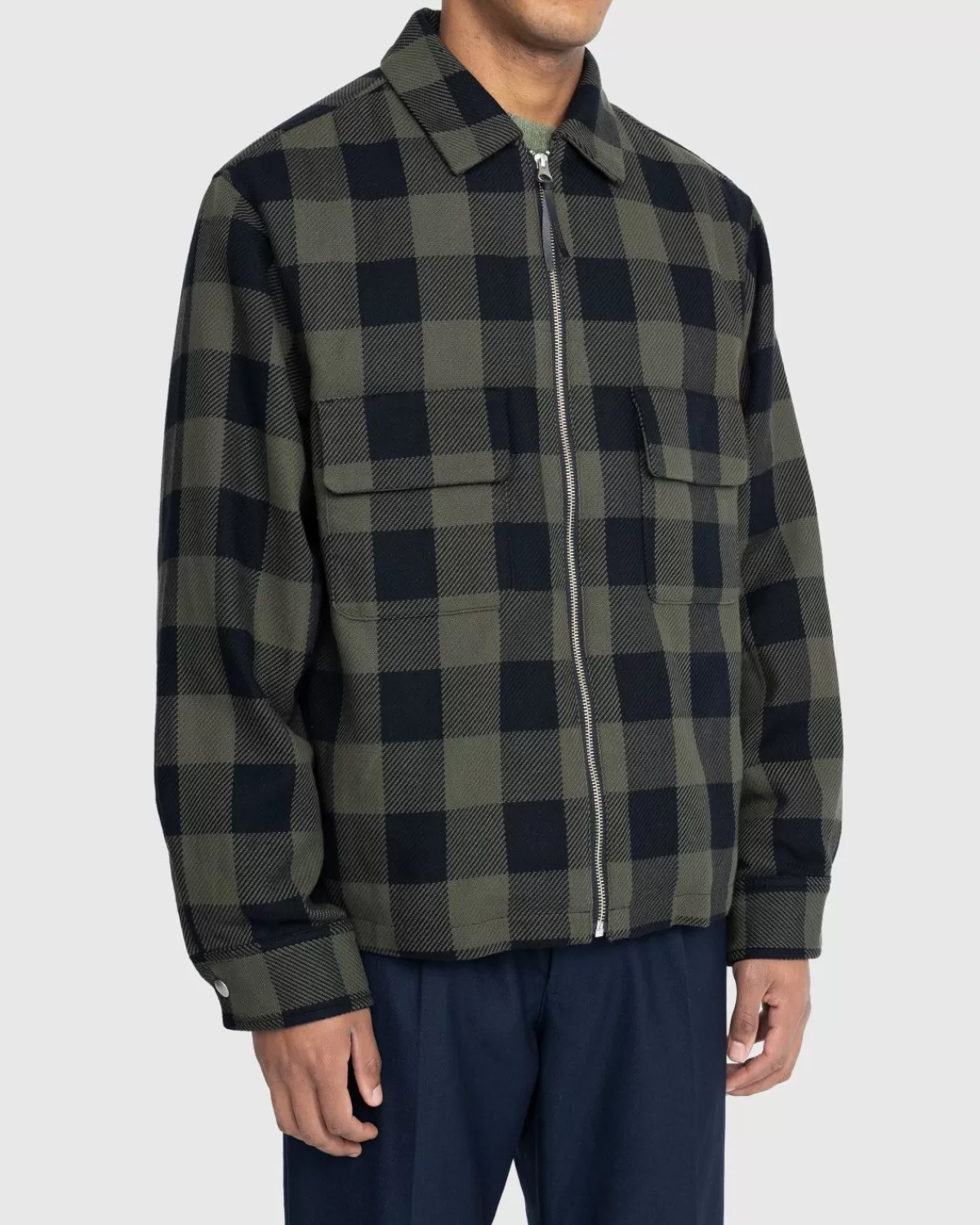Overhemden^Highsnobiety Buffalo Geruit Overhemd Met Rits Olijfgroen