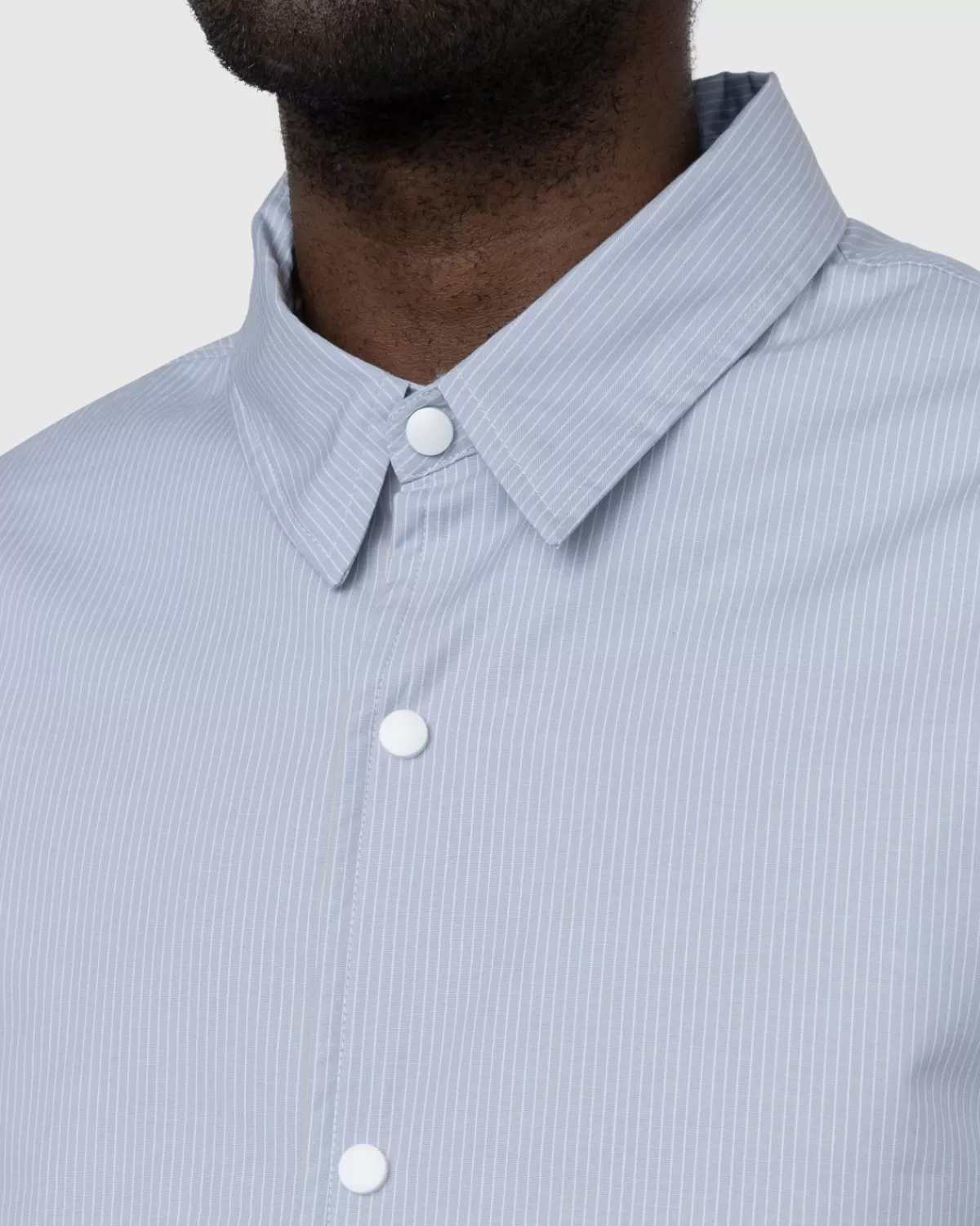 Dit Geïsoleerde Ontwerp Voegt Bescherming Tegen Koud Weer Toe Aan Een Klassiek Gestreept Poplin Overhemd. Het Overhemd Is Verkrijgbaar In Het Blauw Met Dunne Witte Strepen En Heeft Een Crèmekleurige Geïsoleerde Voering Die Het Geschikt Maakt Als Bovenkledingstuk In De Overgangsseizoenen En Als Laagje Tijdens De Koudste Maanden. Voorzien Van Drukknopen Voor Gemakkelijke Toegang. Verdere Details Zijn Onder Meer Zakken Aan Weerszijden Die In De Naden Zijn Verwerkt En Een Klein Logolabel Aan De Linkerkant.