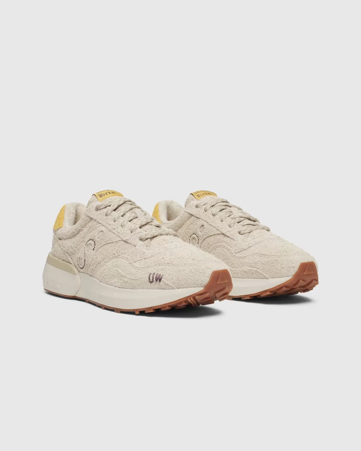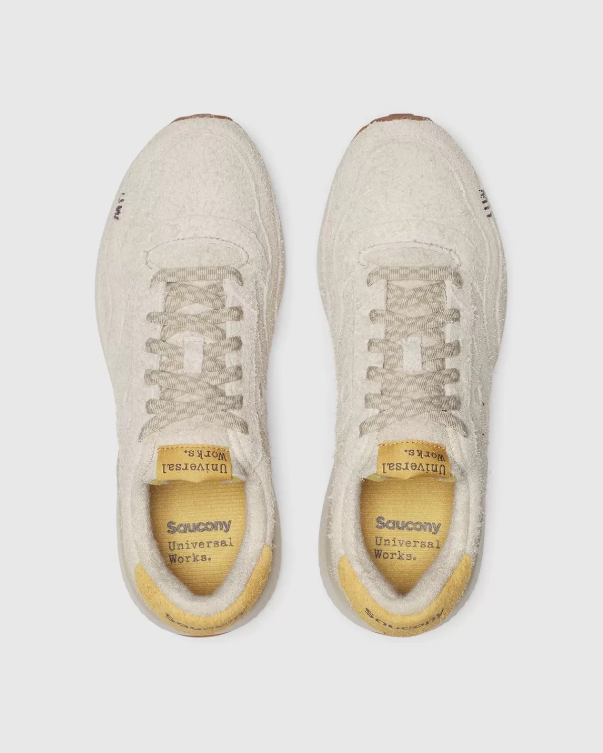 Voor Hun Tweede Samenwerking Vieren Saucony En Universal Works Hun Partnerschap Met Het Nieuwe ‘Future Friendship Project.’ De Collectie Bevat Twee Nieuwe Kleurstellingen Van Het Klassieke Jazz-Silhouet, Verfraaid Met Een Harig Suède Bovenwerk En Een Co-Branded Voetbed. De Jazz Nxt Is Afgewerkt Met Een Geborduurd Logo Op Het Spatbord En Extra Elementen Op Het Kwart, Samen Met Een Tractieverhogende Zool Die Is Gemaakt Van Gomrubber.