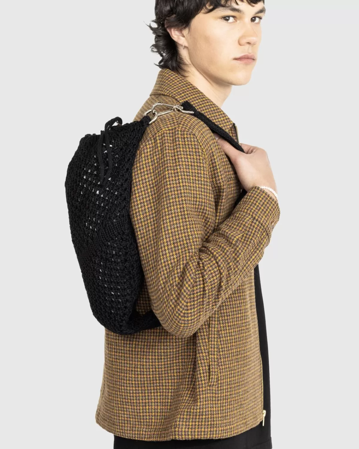De 24H Hobo Sack Is Gemaakt Van Met De Hand Gehaakt Egyptisch Katoen In Italië En Bevat Praktische Details Zoals Een Metalen Koordsluiting, Een Ingebouwd Vak Met Ritssluiting En Een Metalen Karabijnhaak Aan De Sleutelhanger Die Aan De Riem Is Bevestigd. Het Italiaanse Label Ssu Maakt Gebruik Van Technische Uitrusting En Uniformen En Herschept Praktische Vormen Van Handgemaakte Breisels En Haakwerk. Door Een Nieuwe Context Te Geven Aan Traditionele Breitechnieken, Is Het Gespecialiseerd In Tassen En Accessoires Zoals Deze Gebreide Zak.