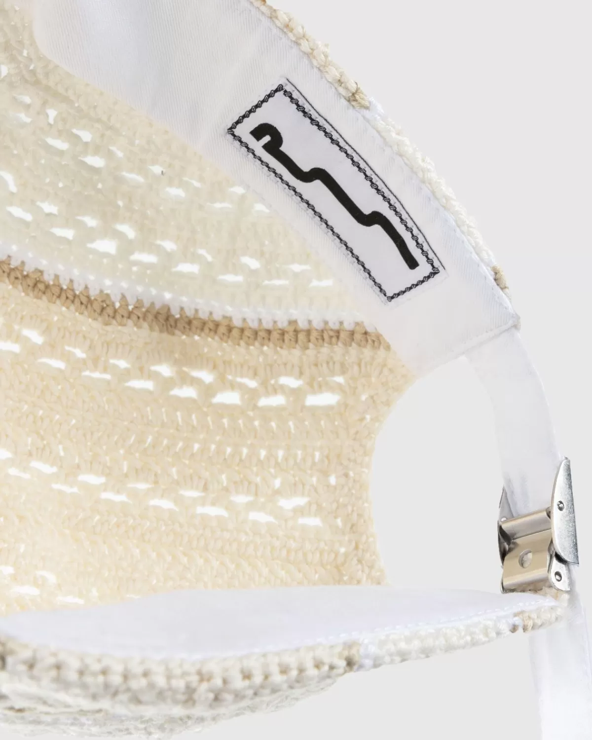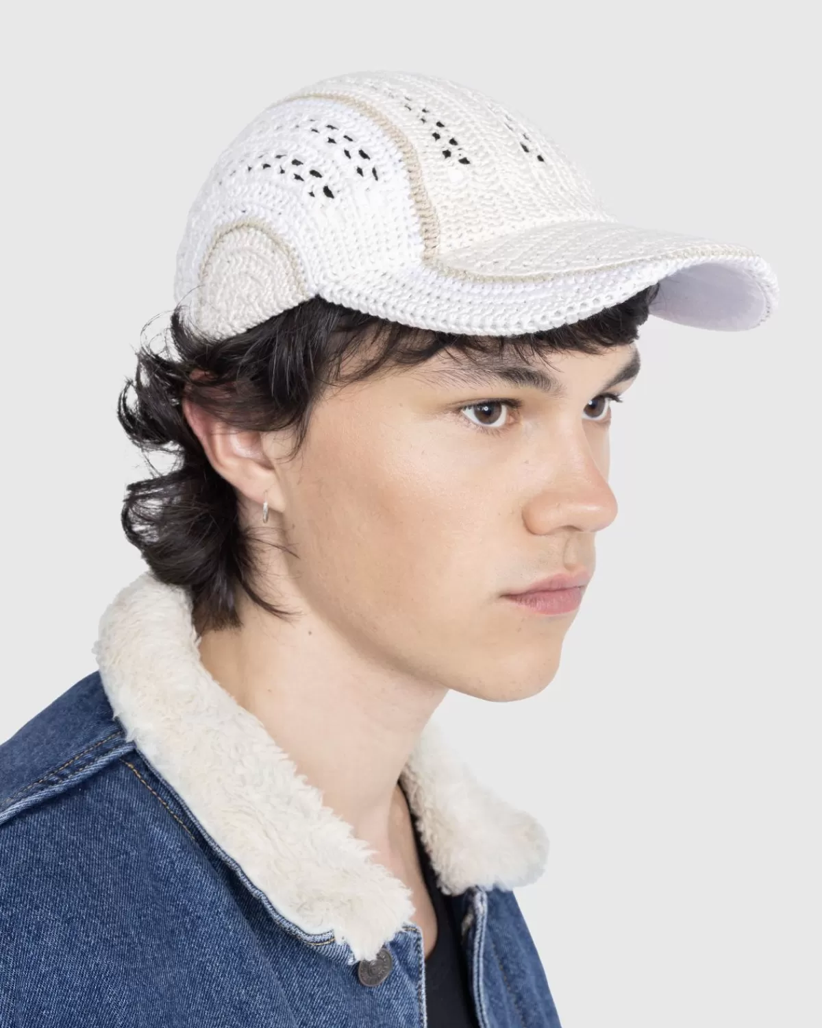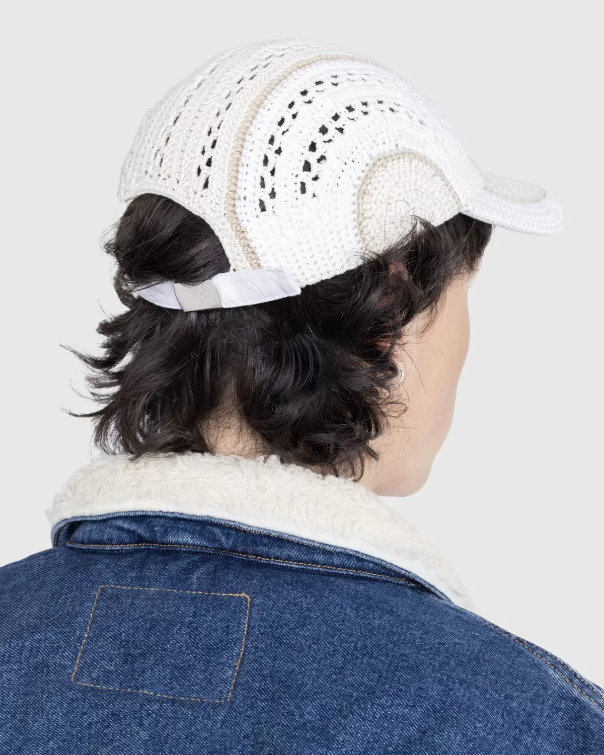 De Baseballcap Is Gemaakt Van Egyptisch Katoen, Met De Hand Gehaakt In Italië, En Heeft Geperforeerde Details En Een Contrasterende Band Aan De Zijkant. Het Italiaanse Label Ssu Maakt Gebruik Van Technische Uitrusting En Uniformen En Herschept Praktische Vormen Van Handgemaakte Breisels En Haakwerk. Het Bedrijf Voegt Een Nieuwe Context Toe Aan Traditionele Breitechnieken En Is Gespecialiseerd In Tassen En Accessoires Zoals Deze Hoed In Honkbalstijl.