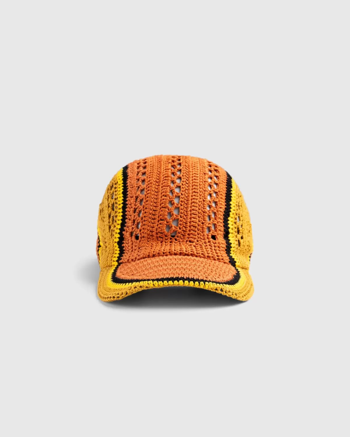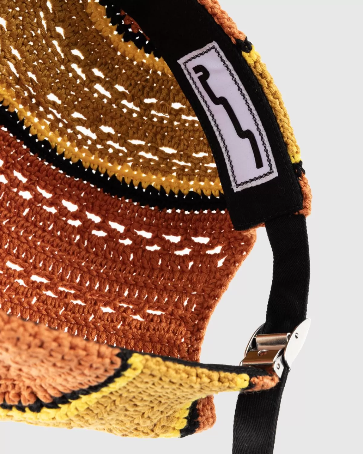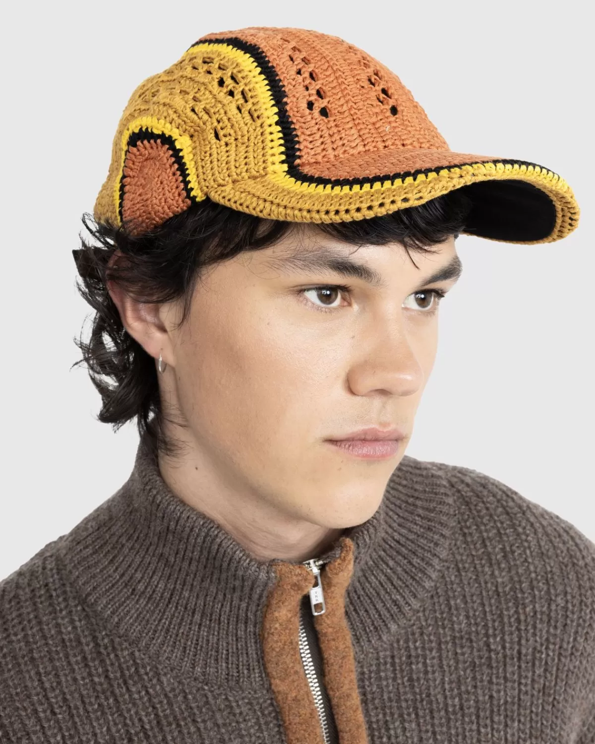 De Baseballcap Is Gemaakt Van Egyptisch Katoen, Met De Hand Gehaakt In Italië, En Heeft Geperforeerde Details En Een Contrasterende Band Aan De Zijkant. Het Italiaanse Label Ssu Maakt Gebruik Van Technische Uitrusting En Uniformen En Herschept Praktische Vormen Van Handgemaakte Breisels En Haakwerk. Het Bedrijf Voegt Een Nieuwe Context Toe Aan Traditionele Breitechnieken En Is Gespecialiseerd In Tassen En Accessoires Zoals Deze Hoed In Honkbalstijl.