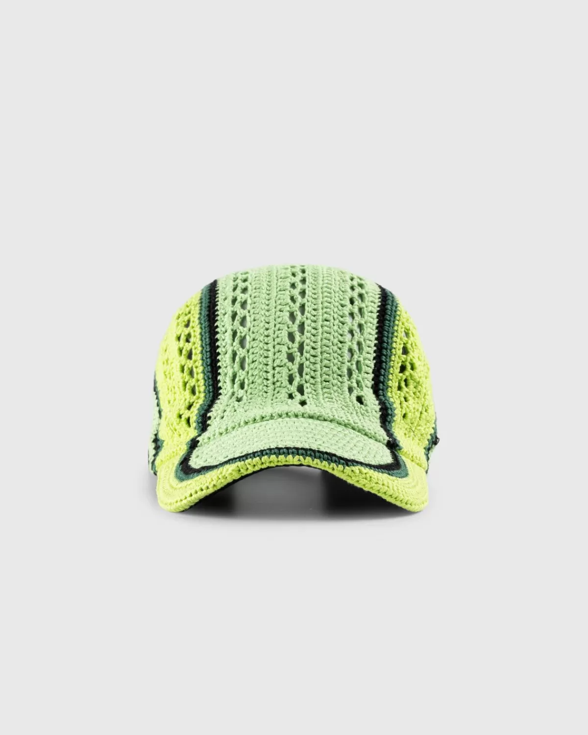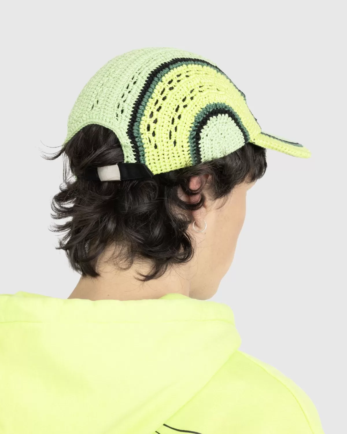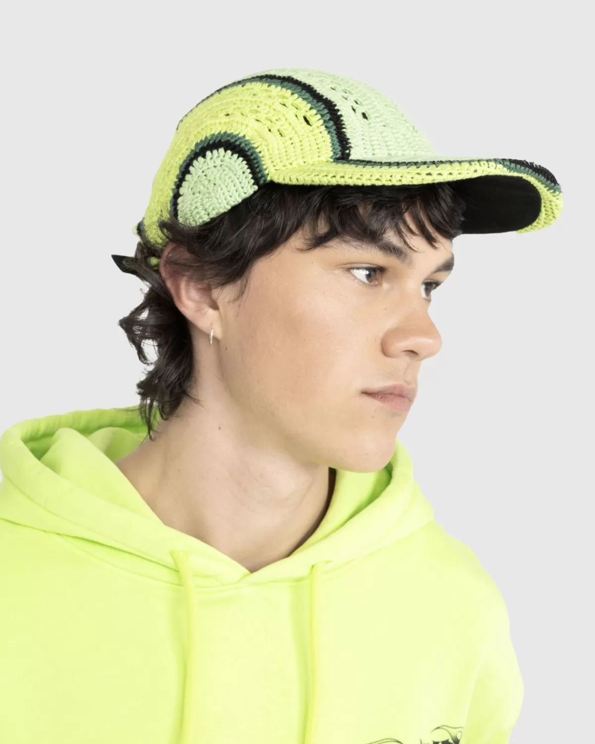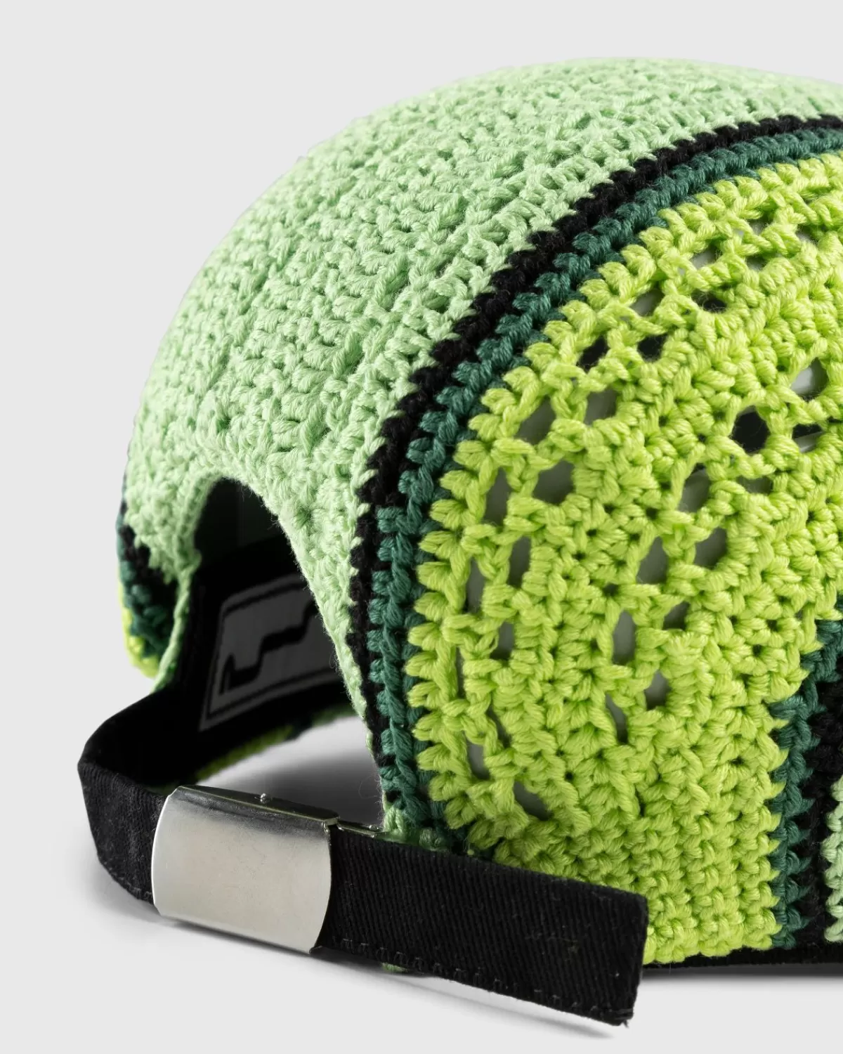 De Baseballcap Is Gemaakt Van Egyptisch Katoen, Met De Hand Gehaakt In Italië, En Heeft Geperforeerde Details En Een Contrasterende Band Aan De Zijkant. Het Italiaanse Label Ssu Maakt Gebruik Van Technische Uitrusting En Uniformen En Herschept Praktische Vormen Van Handgemaakte Breisels En Haakwerk. Het Bedrijf Voegt Een Nieuwe Context Toe Aan Traditionele Breitechnieken En Is Gespecialiseerd In Tassen En Accessoires Zoals Deze Hoed In Honkbalstijl.
