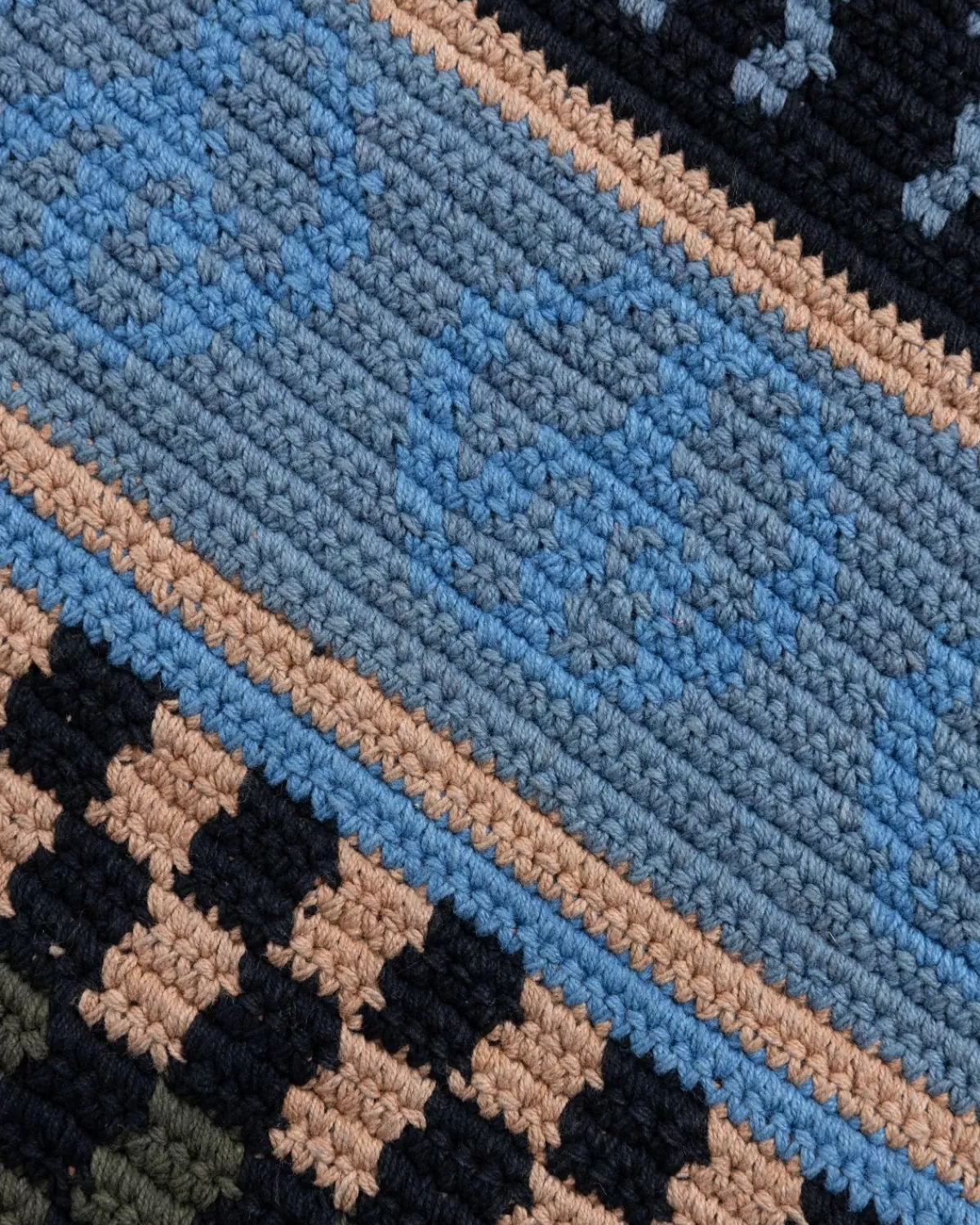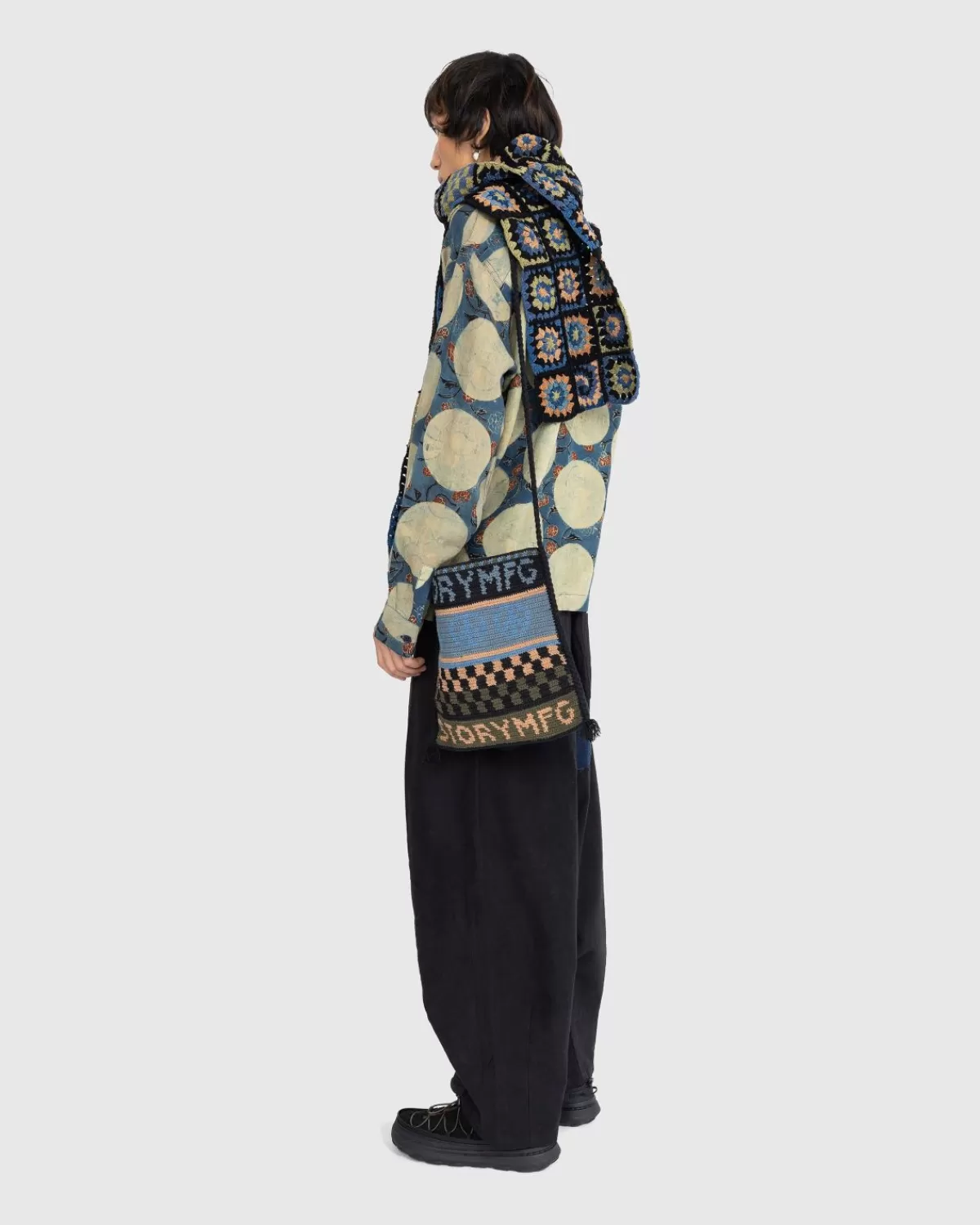 De Stash Bag Van Story Mfg. Is Natuurlijk Geverfd Met Indigo, Boomschors En Verschillende Wilde Planten En Is Met De Hand Gehaakt Met Garen Van Biologisch Katoen. De Stash Bag Is Versierd Met Logo’S En Het Vredesteken-Embleem Van Het Merk En Heeft Het Perfecte Formaat Voor Wandelsnacks, Waardoor Hij Een Ideale Kandidaat Is Voor Je Dagelijkse Tas.