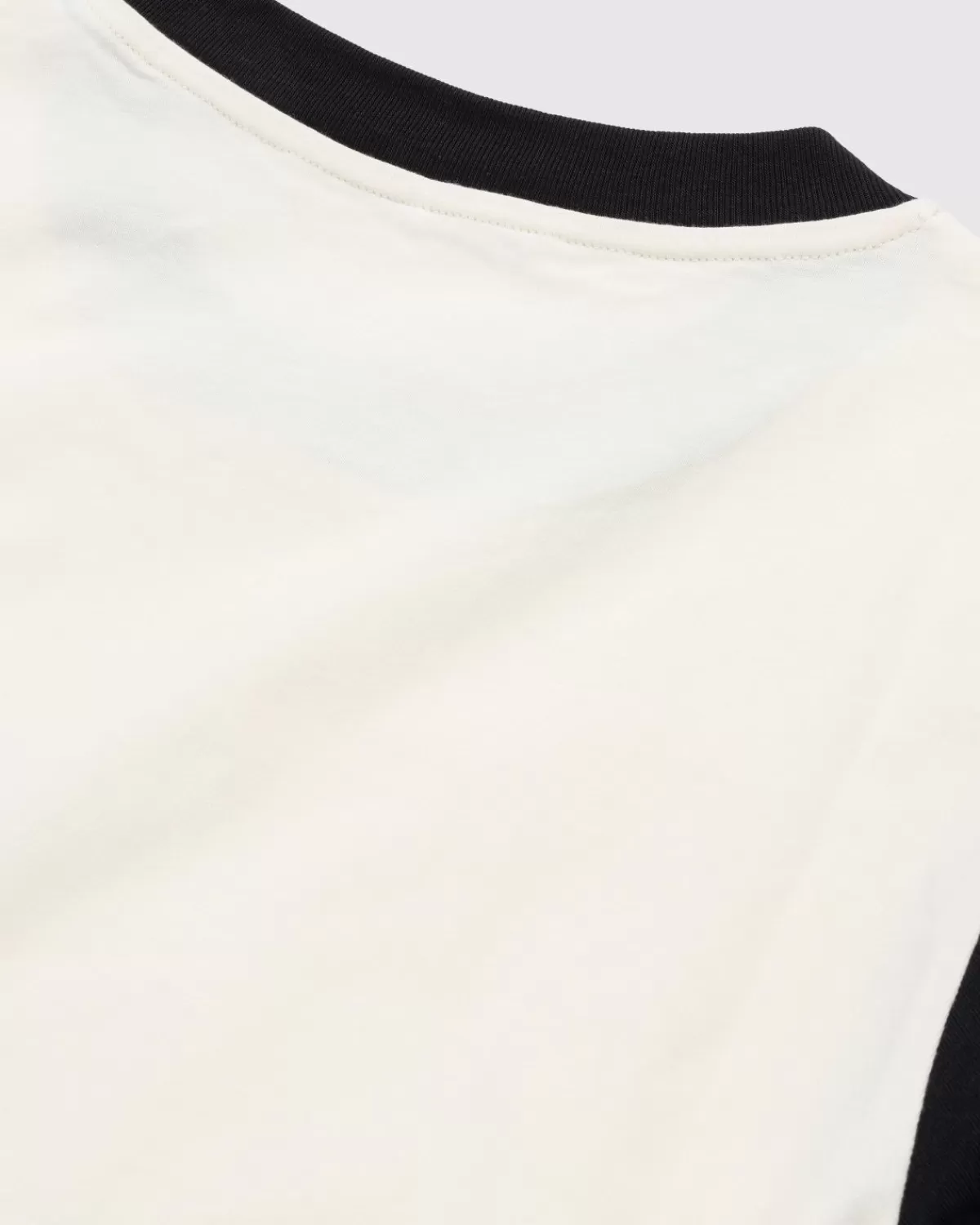 De Morning Tee Is Een Minimalistisch Wales Bonner-Stijl, Versierd Met Een Klein Logo Op De Borst. Het Kledingstuk Heeft Een Boxy, Dameskledingspecifieke Snit En Is Vervolgens Gedetailleerd Met Een Contrasterende Ronde Hals En Bijpassende Korte Mouwen.