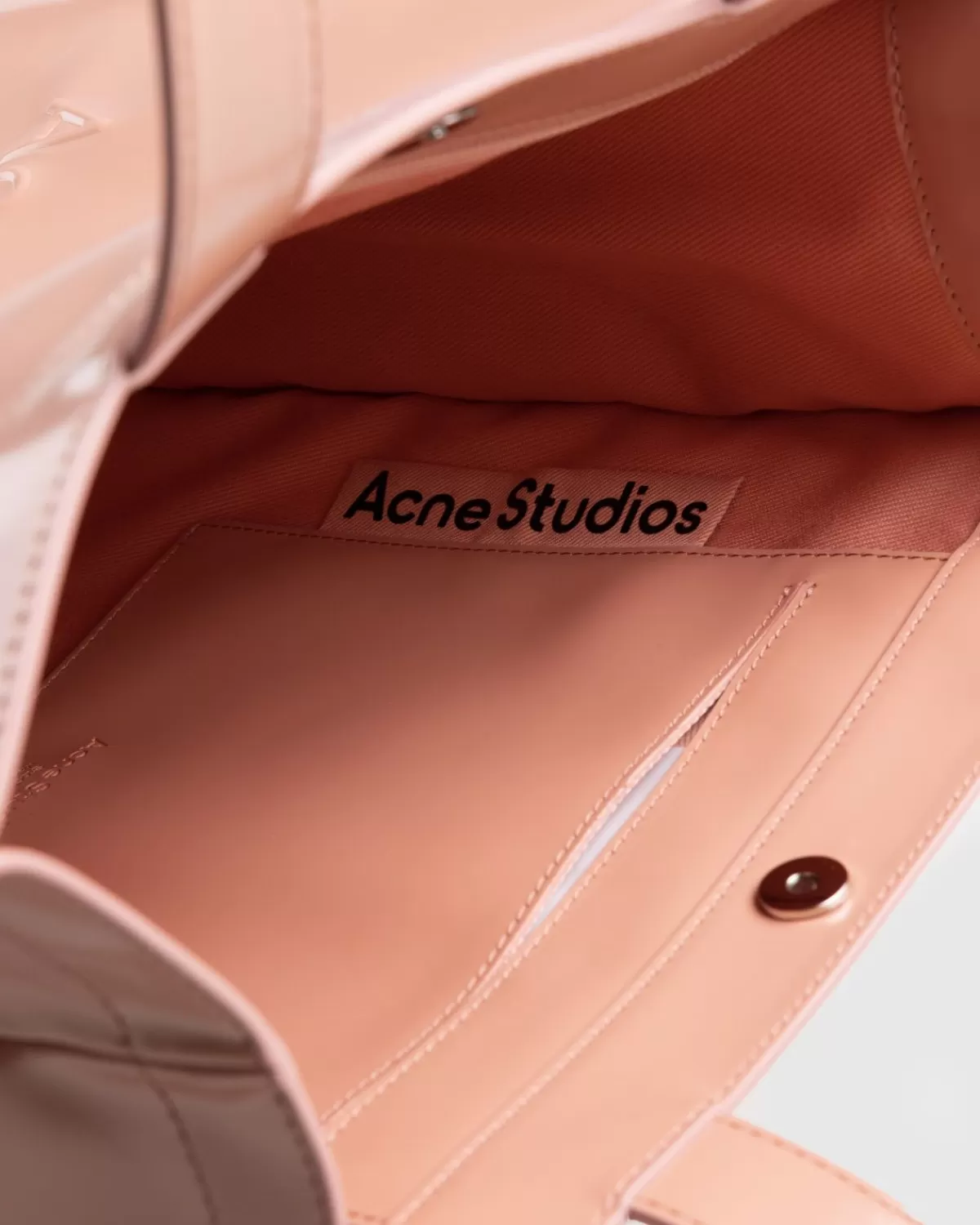 De Logo Bag Is Een Weelderige Update Van De Klassieke Tas, Hier Met Een Glanzende, Licht Gestructureerde Afwerking. De Stijl Wordt Geaccentueerd Door Een Roze Voering Met Een Bijpassend Roze Acne Studios-Label, Terwijl De Buitenkant Van De Tas Is Voorzien Van Een Logo In Reliëf. De Tas Is Uitgerust Met Dubbele Handgrepen Aan De Bovenkant En Een Klein Binnenvak Met Ritssluiting Naast Het Grote Hoofdvak.