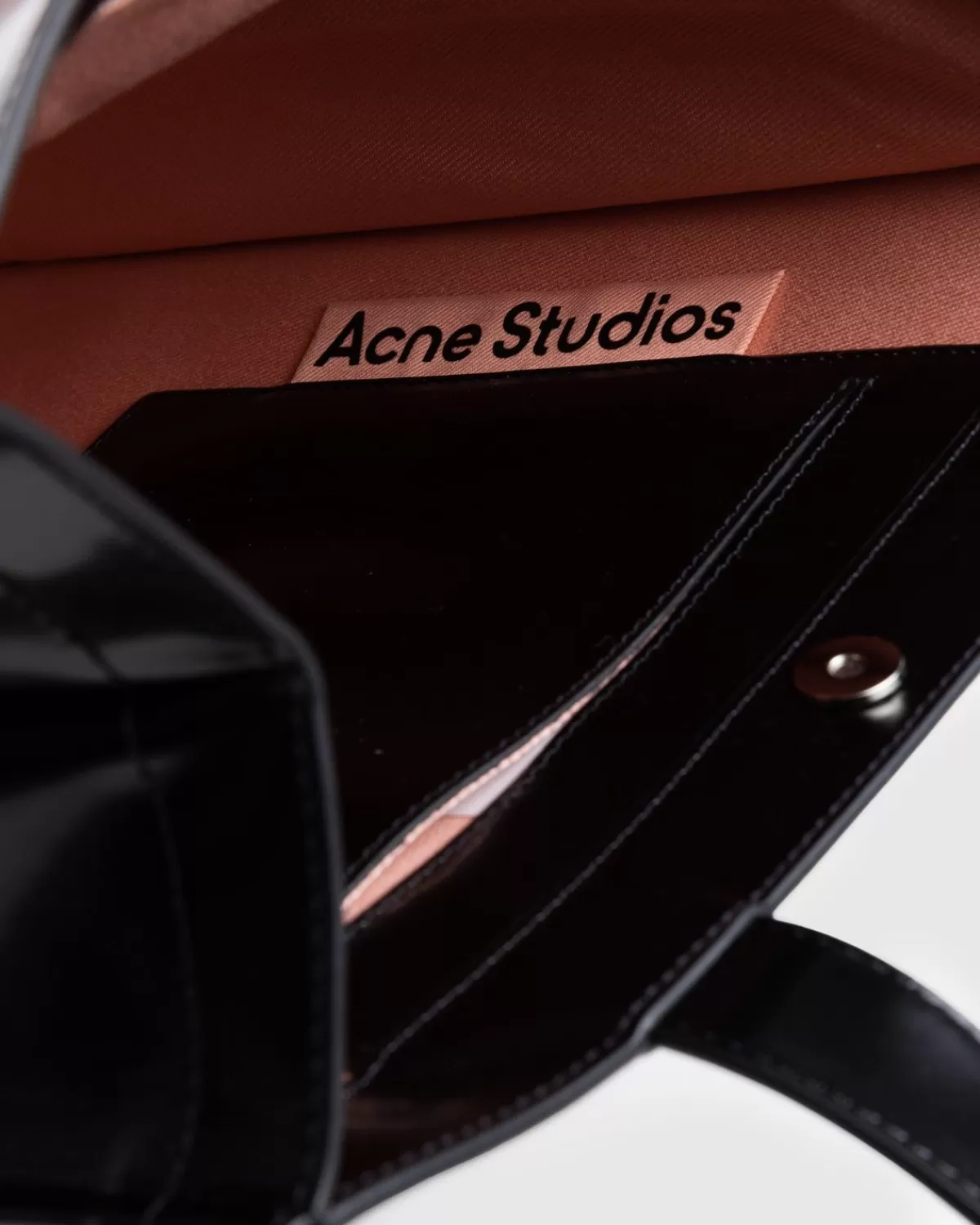 De Logo Bag Is Een Weelderige Update Van De Klassieke Tas, Hier Met Een Glanzende, Licht Gestructureerde Afwerking. De Stijl Wordt Geaccentueerd Door Een Roze Voering Met Een Bijpassend Roze Acne Studios-Label, Terwijl De Buitenkant Van De Tas Is Voorzien Van Een Logo In Reliëf. De Tas Is Uitgerust Met Dubbele Handgrepen Aan De Bovenkant En Een Klein Binnenvak Met Ritssluiting Naast Het Grote Hoofdvak.