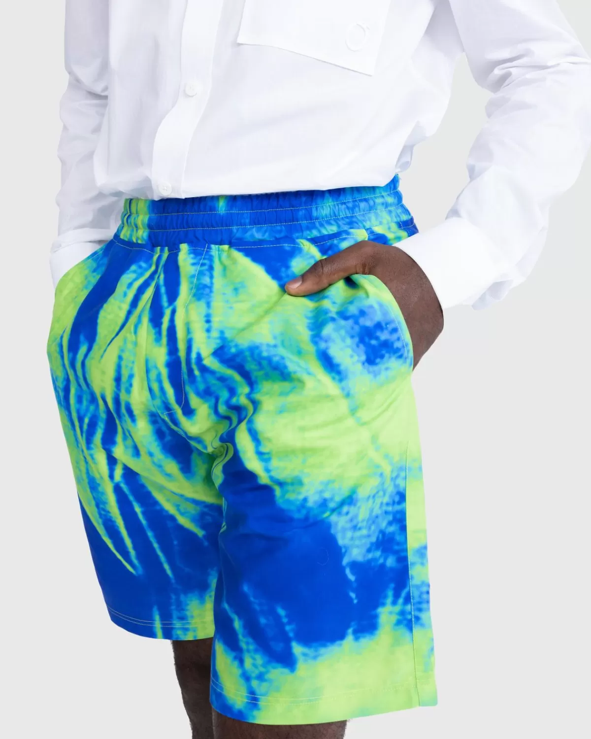 De Scrunch Shorts Zijn Ontworpen Om Je Naadloos Van Strandplezier Naar Nachtelijk Dansen Te Brengen En Hebben Een Opvallend Ontwerp Dat Levendige Tinten Blauw En Groen Combineert Die Bedoeld Zijn Om Positieve Emoties Te Stimuleren En Het Mentale Welzijn Te Bevorderen. Het Waterbestendige Paar Is Gemaakt Van Nylon Met Meshvoering En Heeft Een Elastische Taille Met Verstelbaar Trekkoord, Steekzakken Aan De Zijkant En Een Enkele Achterzak. De Speelse Broekjes Zijn Opgenomen In De Nieuwste Seizoenscollectie Van Agr, Die Uiteindelijk Dient Als Een Viering Van De Reis Van Het Merk.