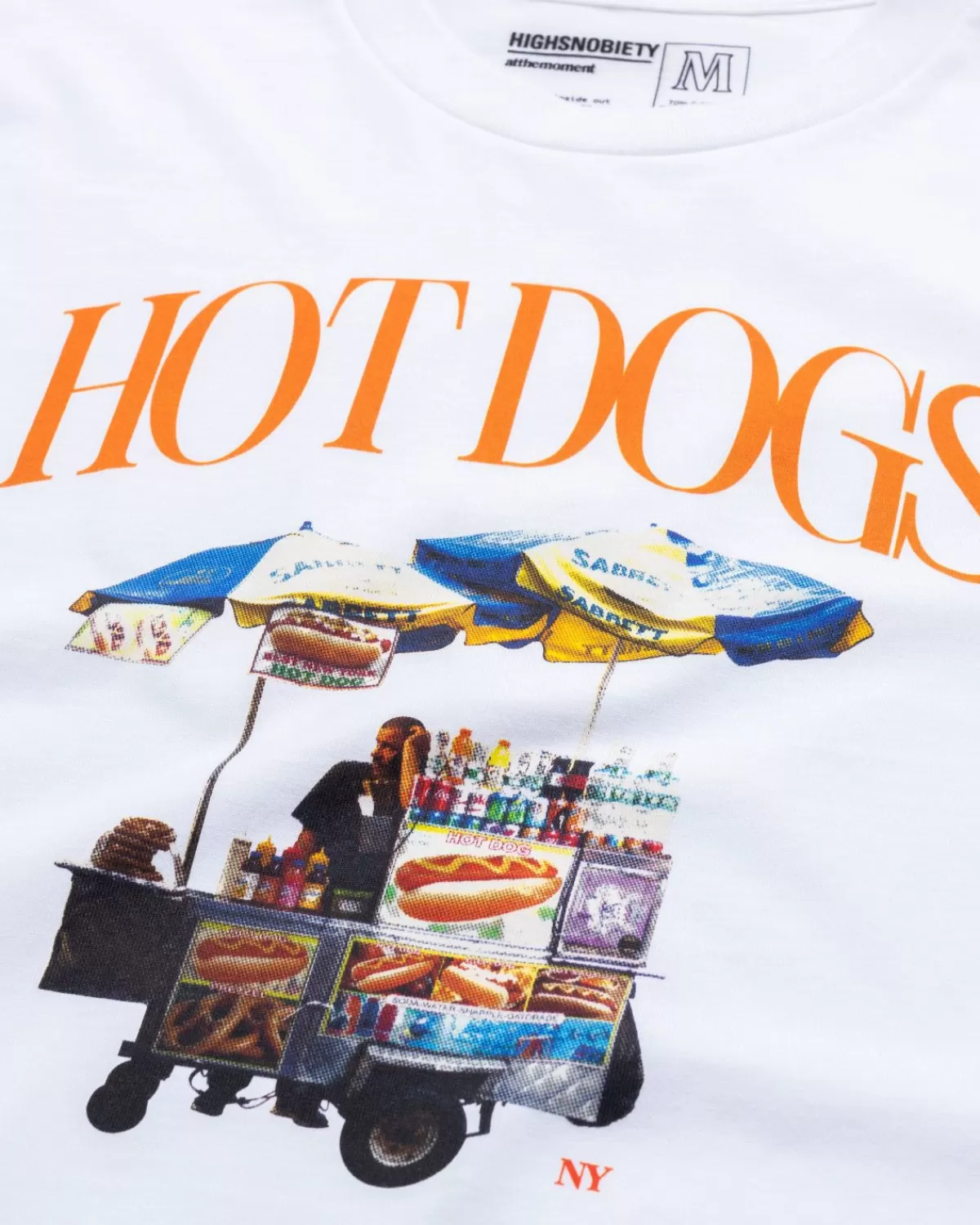 Hoewel De Hot Dog Oorspronkelijk In Duitsland Werd Uitgevonden, Is Hij Uitgegroeid Tot Een Vast Onderdeel Van De On-The-Go-Dinerscene Van New York. Dit T-Shirt Met Korte Mouwen Is Een Samenwerking Met At The Moment En Heeft Een Biologisch Afbreekbare Grafische Print Op De Voorkant Van Een Klassiek Hotdogkarretje Met Drankjes En Pretzels Op Sleeptouw.