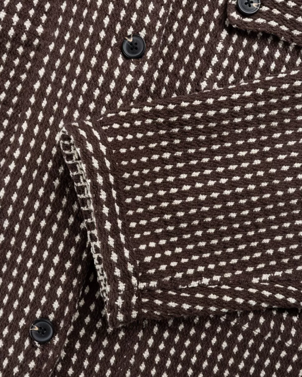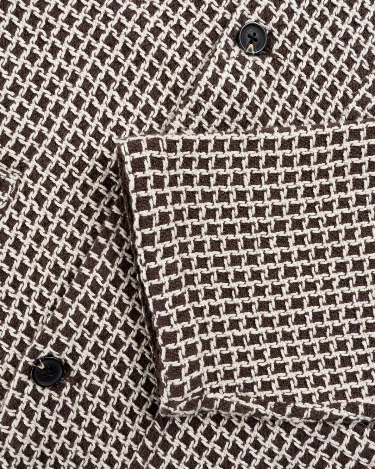 Deze Bode-Bovenkledingstijl Is Geïnspireerd Op Een Wafeldeken Uit De Jaren Vijftig. Het Merk Heeft Op Zijn Beurt De Originele Stof Opnieuw Gebruikt, Met Een Geborduurd Logo Op De Achterkant Van Het Silhouet. Het Jack Is Gemaakt Van 100% Katoen En Heeft Een Klassieke Kraag, Een Knoopsluiting Aan De Voorkant En Vier Opgestikte Zakken Aan De Voorkant.