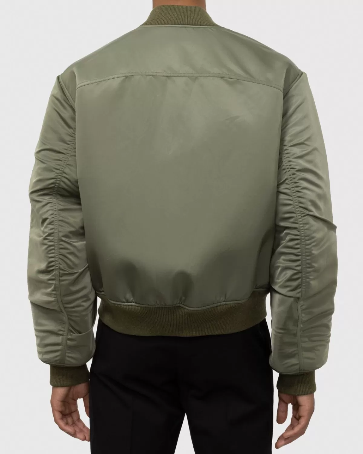 Een Stijlvol Bomberjack Is Een Must In Elke Echte Bovenkledingcollectie. Dit Seizoen Levert Dries Van Noten Dienovereenkomstig Met Een Nieuw Ontwerp Uitgevoerd In Een Veelzijdige Olijfgroene Kleurstelling. Het Bomberjack Heeft Een Losse Pasvorm Voor Meer Draagcomfort En Is Gemaakt Van Slijtvast Polyester, Met Geribde Boorden Aan De Kraag, Manchetten En Zoom. De Stijl Is Uitgerust Met Een Tweewegritssluiting Aan De Voorkant En Zakken Met Ritssluiting Aan De Zijkanten En Borst.