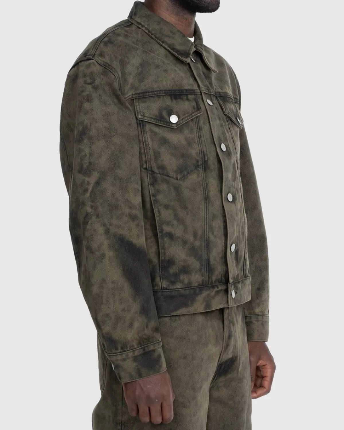 De Nieuwste Collectie Van Dries Van Noten Bevat Een Hybride Van Unieke Prints, Texturen En Androgyne Kledingstukken Die Een Frisse Kijk Bieden Op Hedendaagse Herenkleding. Het Vuskin-Denimjack Is Een Verheven Versie Van Het Tijdloze Kledingstuk En Is Hier Gemaakt Van Zwart Denim En Overdyed Om Een Uniek Vlekeffect Te Creëren Dat Synoniem Is Met De Esthetiek Van De Belgische Ontwerper. Het Losvallende Jasje Heeft Twee Voorzakken En Een Knoopsluiting Aan De Voorkant.