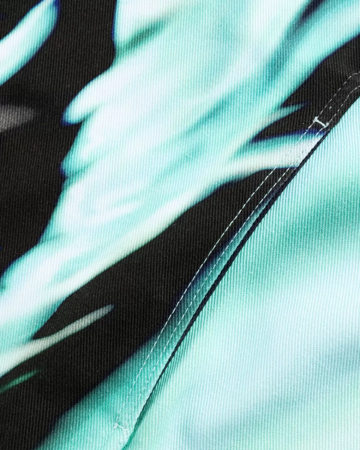 Het Bedrukte Spijkerjack, Een Essentieel Onderdeel Uit De Nieuwste Collectie Van Het Merk, Is Hier Te Zien In Een Reeks Groene, Zwarte En Witte Tinten, Met Een Boeiende Airbrush-Print. Met Een Smaakvol Oog Voor Unieke Graphics En Esthetiek Is De Gelijknamige Lijn Van Gerrit Jacob Snel Gestegen Onder De Bloeiende Ontwerpers Van Deze Generatie. Het Merk Biedt Verschillende Silhouetten Uit Zijn Confectiecollecties, Maakt Gebruik Van Beelden En Motieven Uit Het Duitse Erfgoed Van De Ontwerper En Herschept Deze In Levendige Collecties Die Kitsch Combineren Met Hedendaagse Luxe.