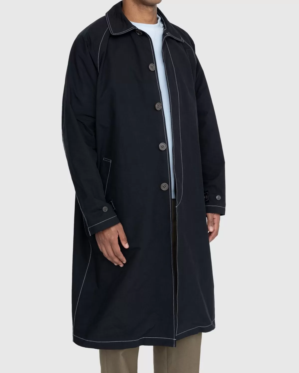 Ons Contrasterende Mac-Jack Is Een Klassiek Bovenkledingstuk Voor Het Herfst-/Winterseizoen En Is Een Nieuwe Kijk Op Een Tijdloos Kledingstuk. Het Is Gemaakt Door Het Eigen Label Van Highsnobiety En Is Gemaakt Van Een Nylonmix Die Is Omgekeerd Voor Een Matte Afwerking. De Witte Stiksels In De Jas Contrasteren Met De Beige Stof En Accentueren Details Zoals De Manchetten Met Knopen, Schuine Zakken En Een Verborgen Sluiting Aan De Voorkant.