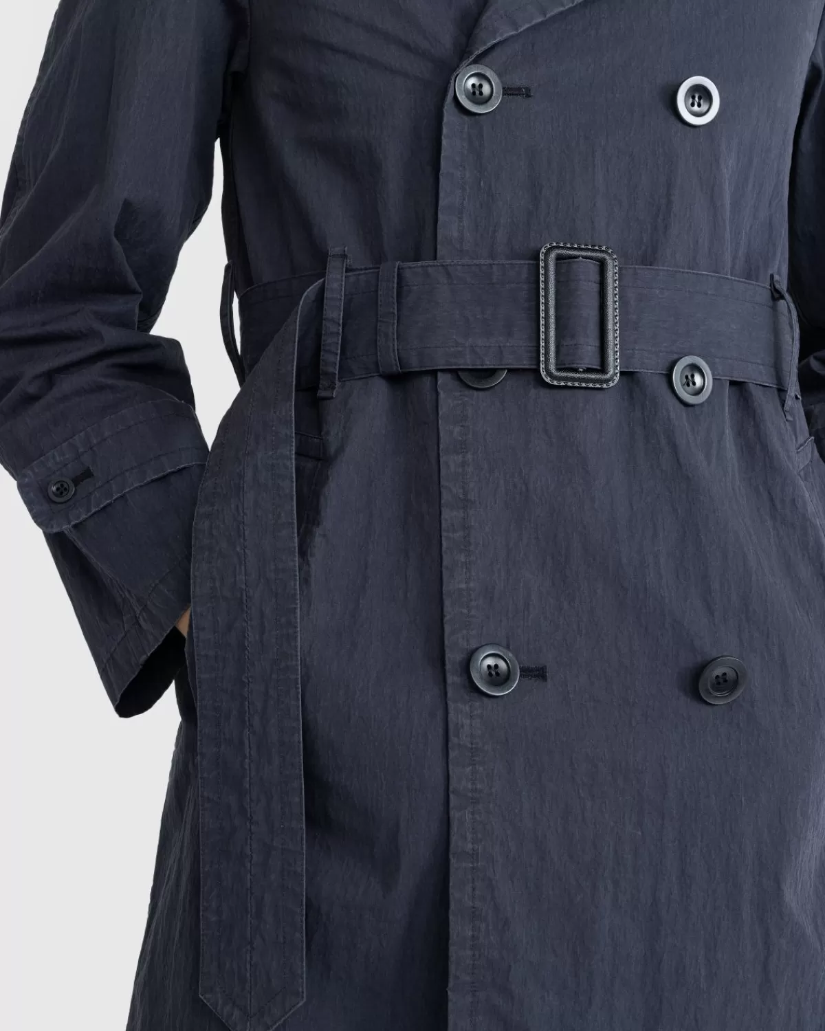 Dit Seizoen Komt Maison Margiela Met Een Verhoogde Kijk Op Een Bovenkledingstuk. De High-Fashion Trenchcoat Is Gemaakt Van Een Katoen-Nylonmix Met Double-Breasted Details. Het Heeft Een Ingekerfde Kraag, Een Tailleband En Manchetten Met Riem En Een Centrale Ventilatieopening Aan De Achterkant. Aan De Zijkanten Van Het Silhouet Zijn Zakken Verwerkt, Terwijl Het Kledingstuk Is Afgewerkt Met De Iconische Margiela-Naam Met Vier Steken Op De Achterkant.