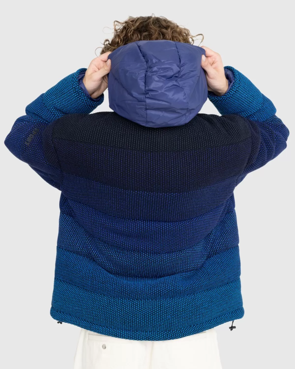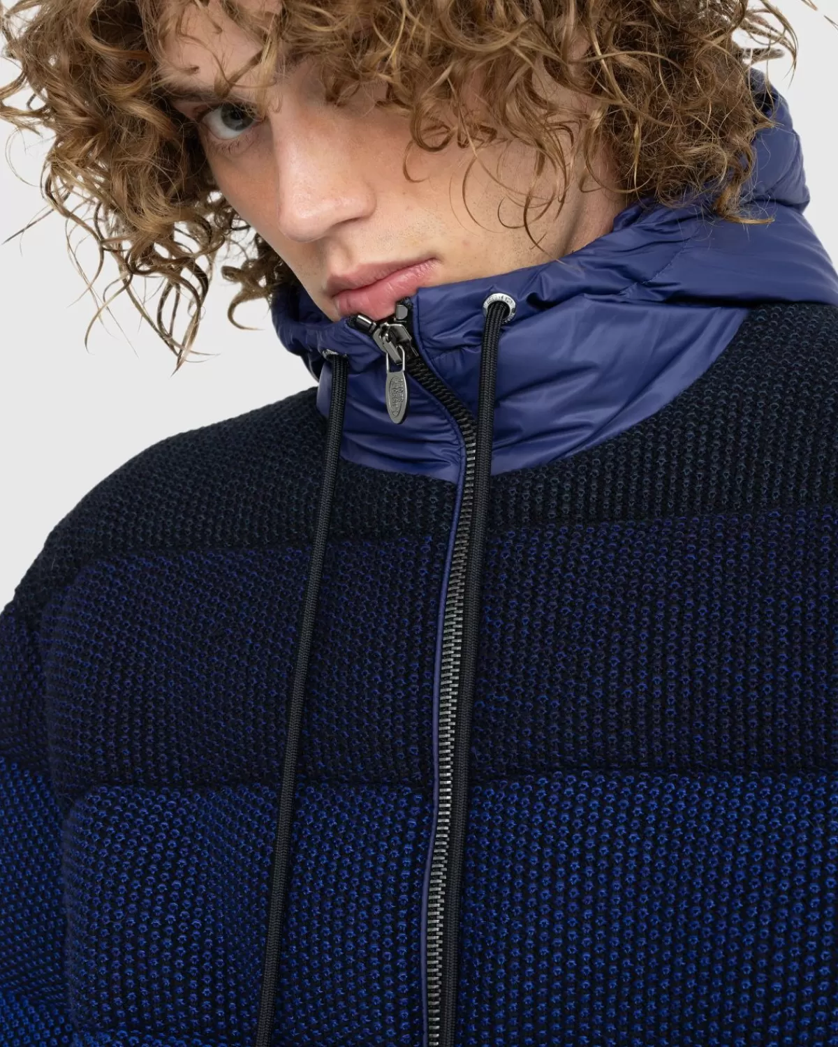 Missoni’S Donsjack Met Capuchon Fascineert Met Een Opvallend Ombre-Effect Dat Overgaat Van Blauwtinten Naar Zwart. De Wi…