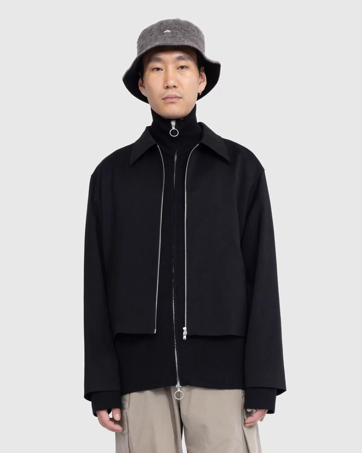 De Mini Jacket Is Een Verbeterde Versie Van Een Bekende Bovenkledingstijl. Het Kledingstuk Is Vervaardigd Uit Italiaanse Scheerwol En Is Vervolgens Volledig Gevoerd Met Cupro. Het Is Gesneden Voor Een Korte, Boxy-Pasvorm En Gedetailleerd Met Een Riri Tweewegritssluiting En Steekzakken Aan De Voorkant Om Het Ontwerp Compleet Te Maken.