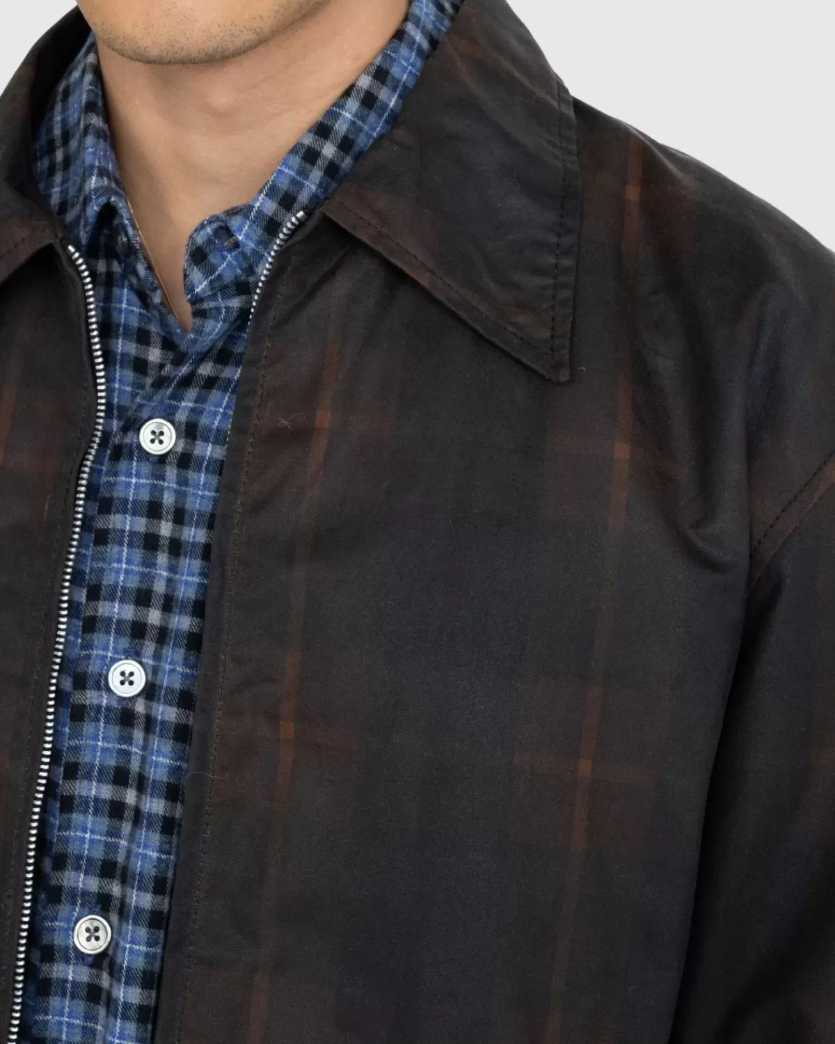 De Mini Jacket Is Een Verbeterde Versie Van Een Bekende Bovenkledingstijl. Het Kledingstuk Is Vervaardigd Uit Een Schotse Bci-Katoenstof Met Een Waterafstotende Afwerking En Is Vervolgens Volledig Gevoerd Met Cupro. Het Is Gesneden Voor Een Korte, Boxy-Pasvorm En Gedetailleerd Met Een Riri Tweewegritssluiting En Steekzakken Aan De Voorkant Om Het Ontwerp Compleet Te Maken.