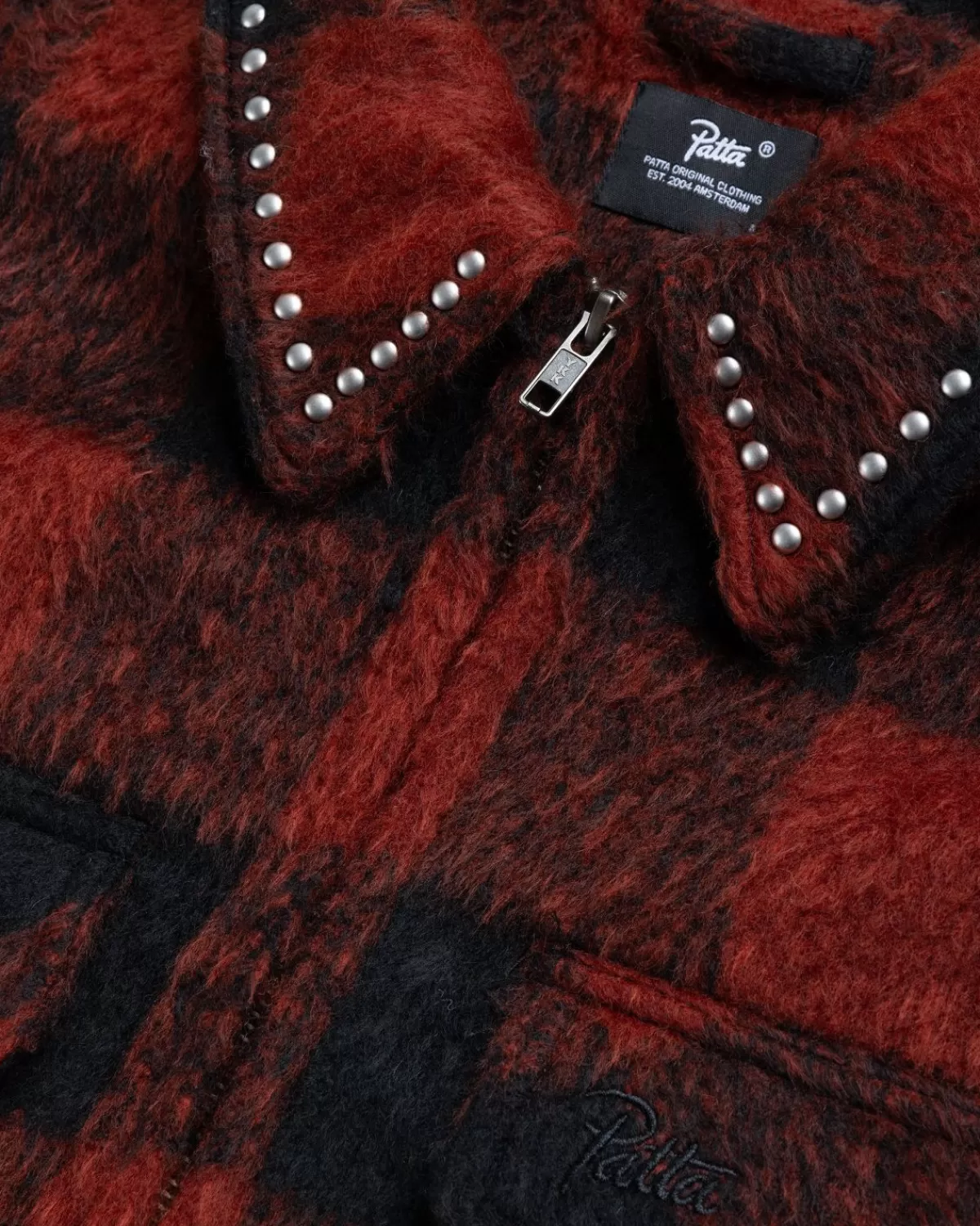 De Patta Car Coat Heeft Een All-Over Ruitpatroon En Is Verder Verfraaid Met Studs Op De Kraag, De Steekzakken Aan De Voorkant En De Achterkant. Bovendien Is De Stijl Voorzien Van Patta-Iconografie Aan De Voorkant En De Achterkant Van Het Silhouet. De Jas Heeft Een Ritssluiting Aan De Voorkant, Manchetten Met Drukknopen En Twee Klepzakken Op De Borst.