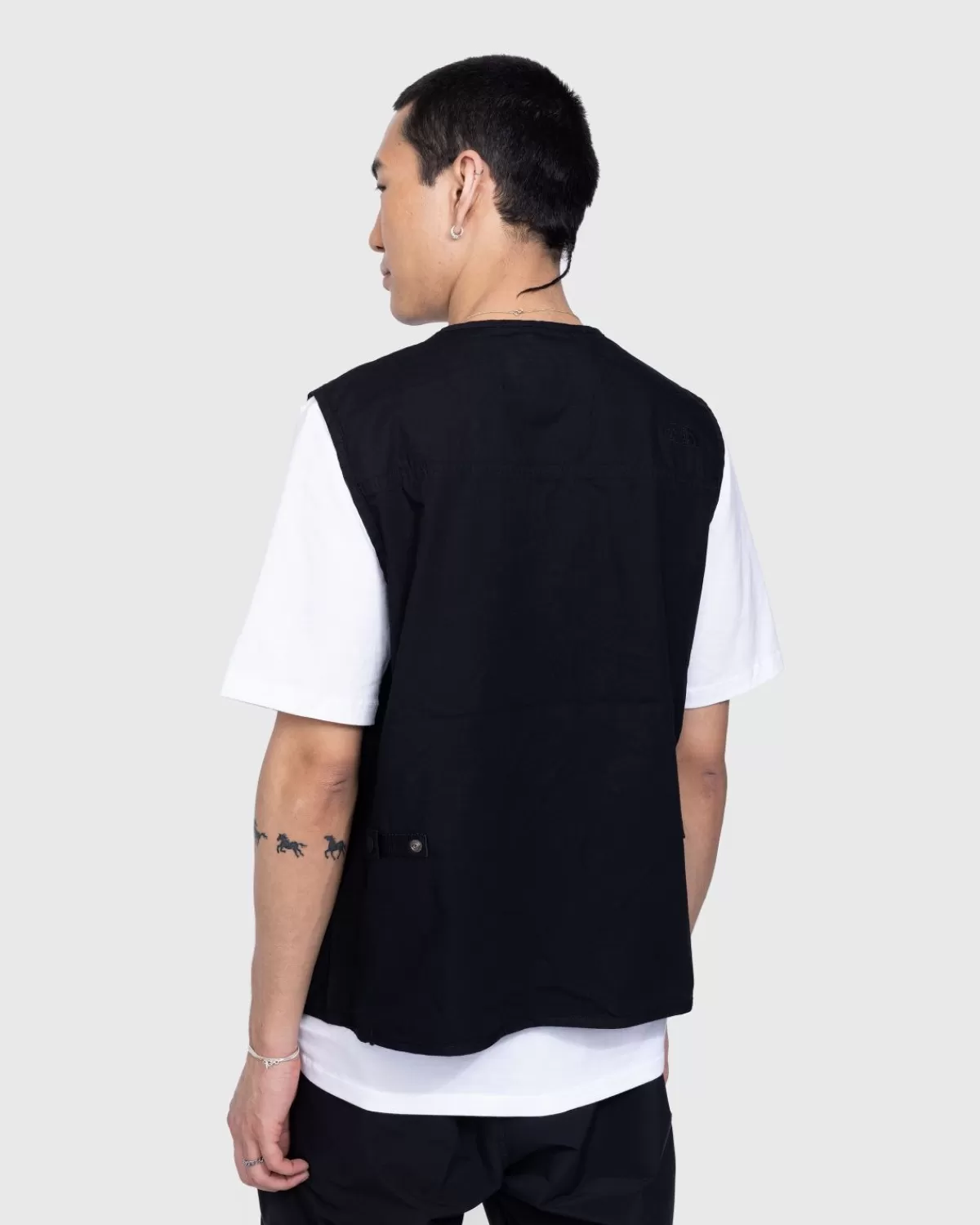 Geïnspireerd Door De M66 Utility Jacket, Komt De Utility Field Vest In Een Onopvallende Geheel Zwarte Kleurstelling, Geproduceerd Van 100% Polyester. Het Kledingstuk Is Voorzien Van Een Volledige Ritssluiting, Een Riem Aan De Voorkant Met Een Gesp Aan De Zijkant En Een Koord Aan De Achterkant, Allemaal Geïmplementeerd Voor Kleine Aanpassingen Aan De Styling. Meerdere Compartimenten Bieden Voldoende Ruimte Voor Het Opbergen Van Kleine Benodigdheden, Waaronder Twee Borstzakken Met Ritssluiting, Een Extra Zak Met Ritssluiting Op De Rechterschouder En Twee Opgestikte Zakken Met Plooiklep Die Ook Aan De Voorkant Zijn Verwerkt. Het Stuk Is Afgewerkt Met Een Tonaal Geborduurd Tnf-Logo Op De Linkerschouder.