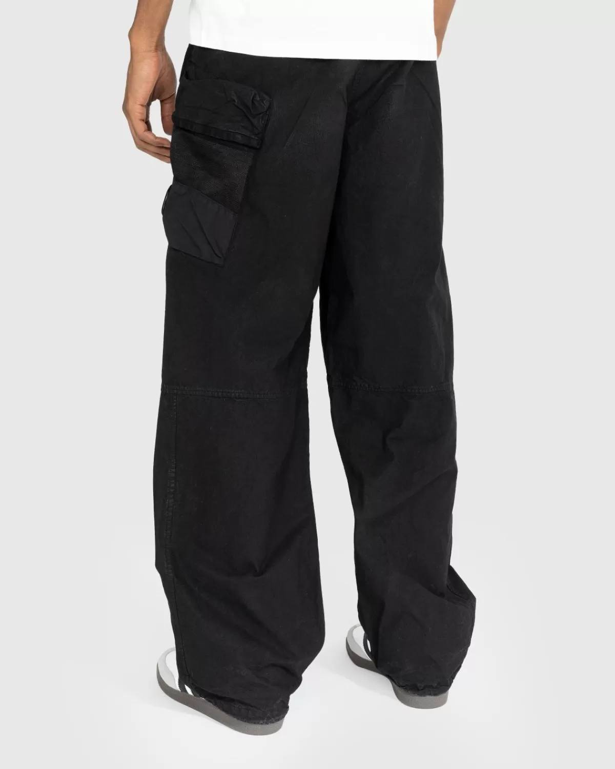 Deze Cp Company-Broek Combineert Een Nylon Buitenkant Met Katoenen Voering En Heeft Een Pasvorm Met Wijde Pijpen En Een Hoge Taille. Het Model Is Vervolgens Uitgerust Met Een Elastische Tailleband Met Gespsluiting, Paspelzakken Aan De Zijkant En Een Zijzak Met Ritssluiting. De Kenmerkende Lensdetails Van Het Merk Zijn Verwerkt In Het Zijvak Met Ritssluiting Om Het Silhouet Te Definiëren.