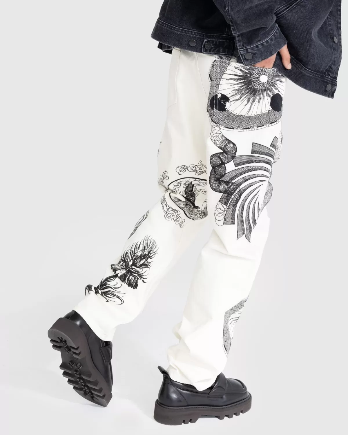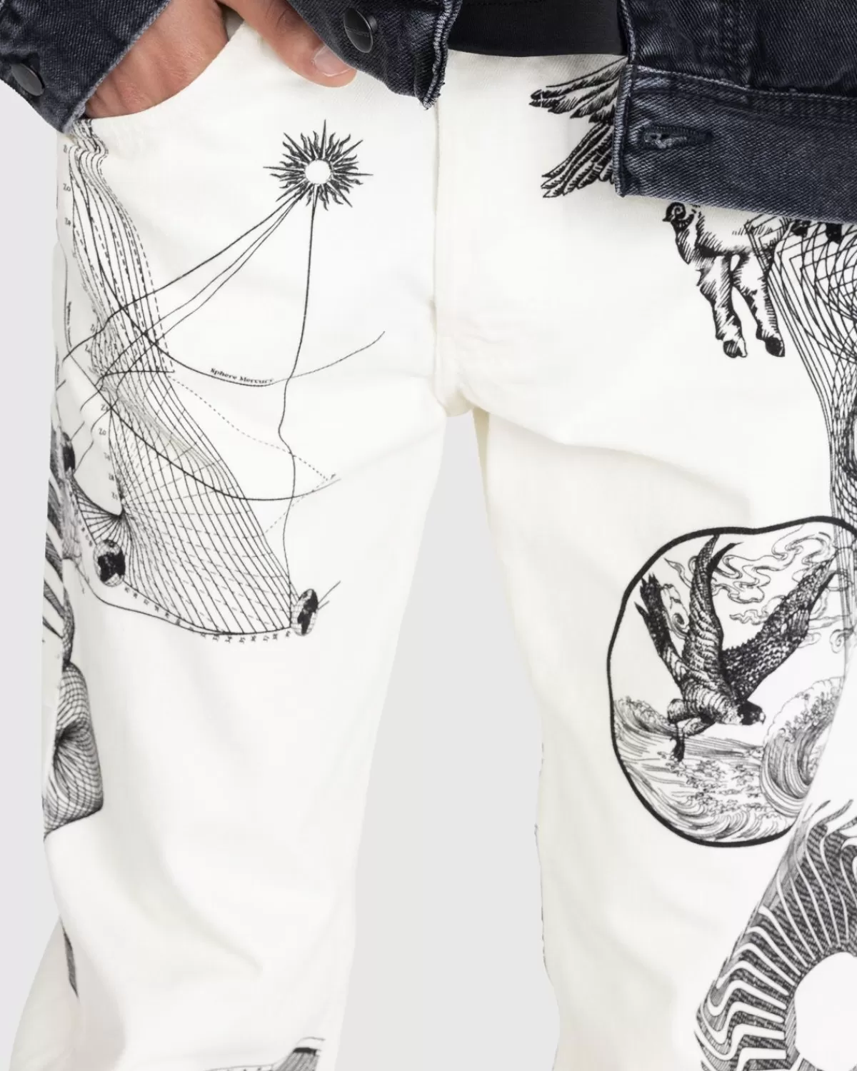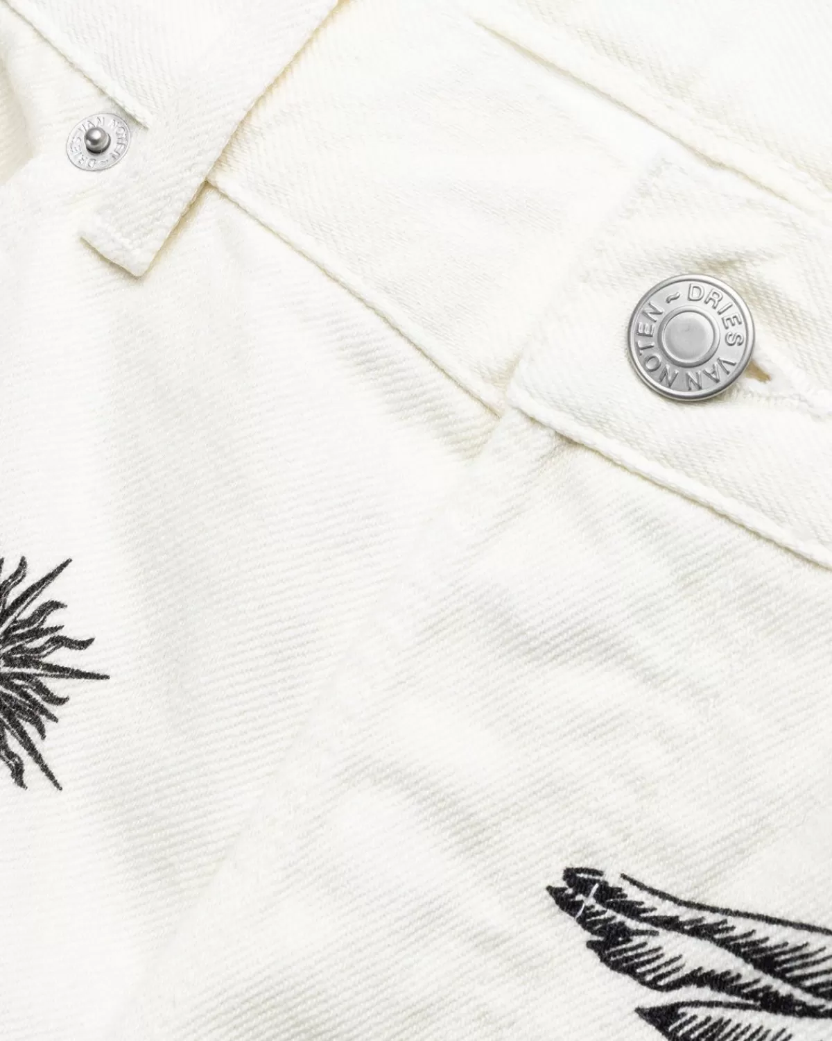 Geïnspireerd Door Tekeningen Uit De Bibliotheek Van Plantentuin Meise In België, Is De Panthero Pants Een Perfect Voorbeeld Van De Beheersing Van Denim En Prints Van De Belgische Ontwerper. De Broek Heeft Een Normale Pasvorm Met Een Middelhoge Taille, Is Gemaakt Van Zacht Katoenen Materiaal En Is Gedetailleerd Met Vijf Zakken, Een Leren Riemlus Met Merklogo En Een Knoop- En Ritssluiting.