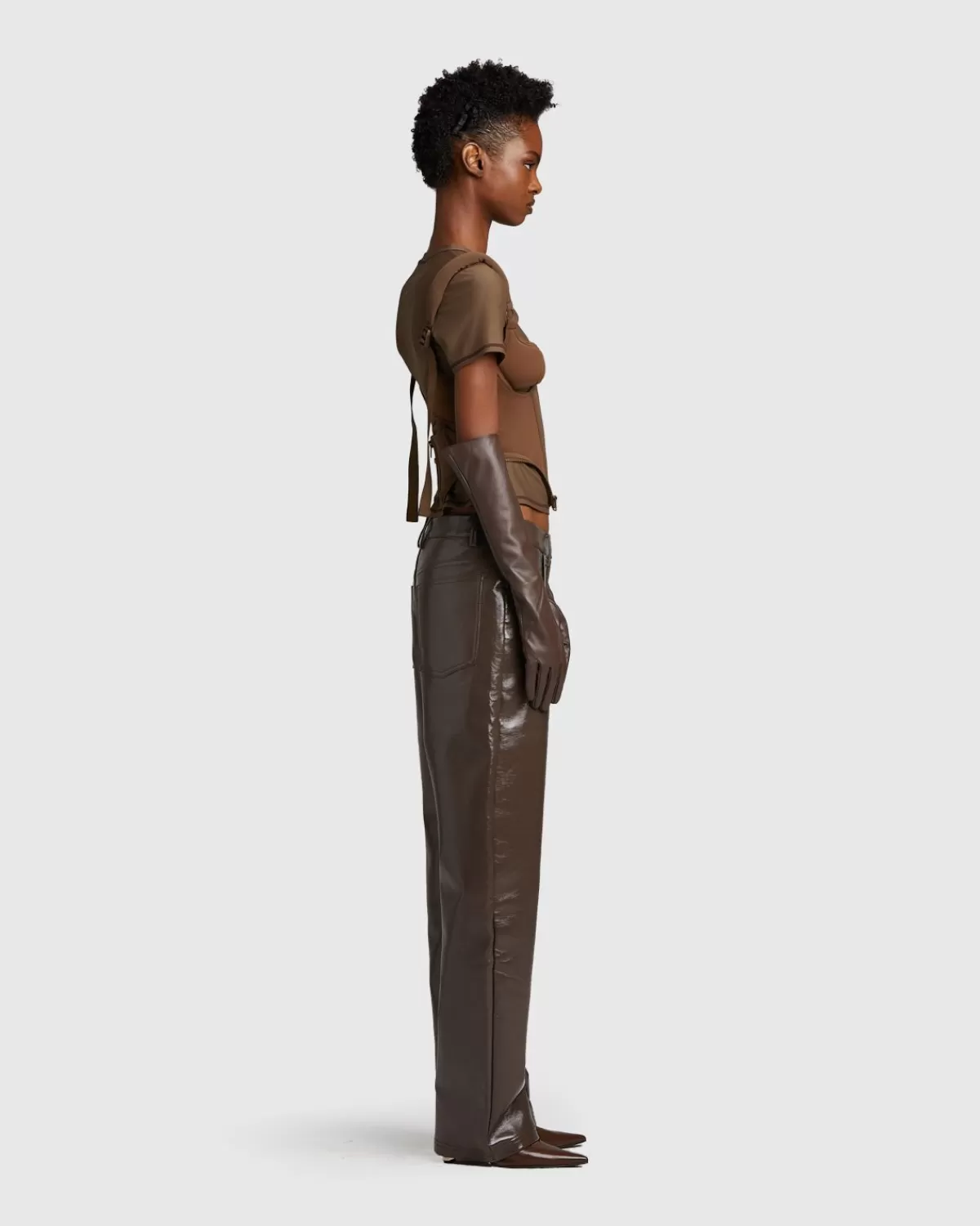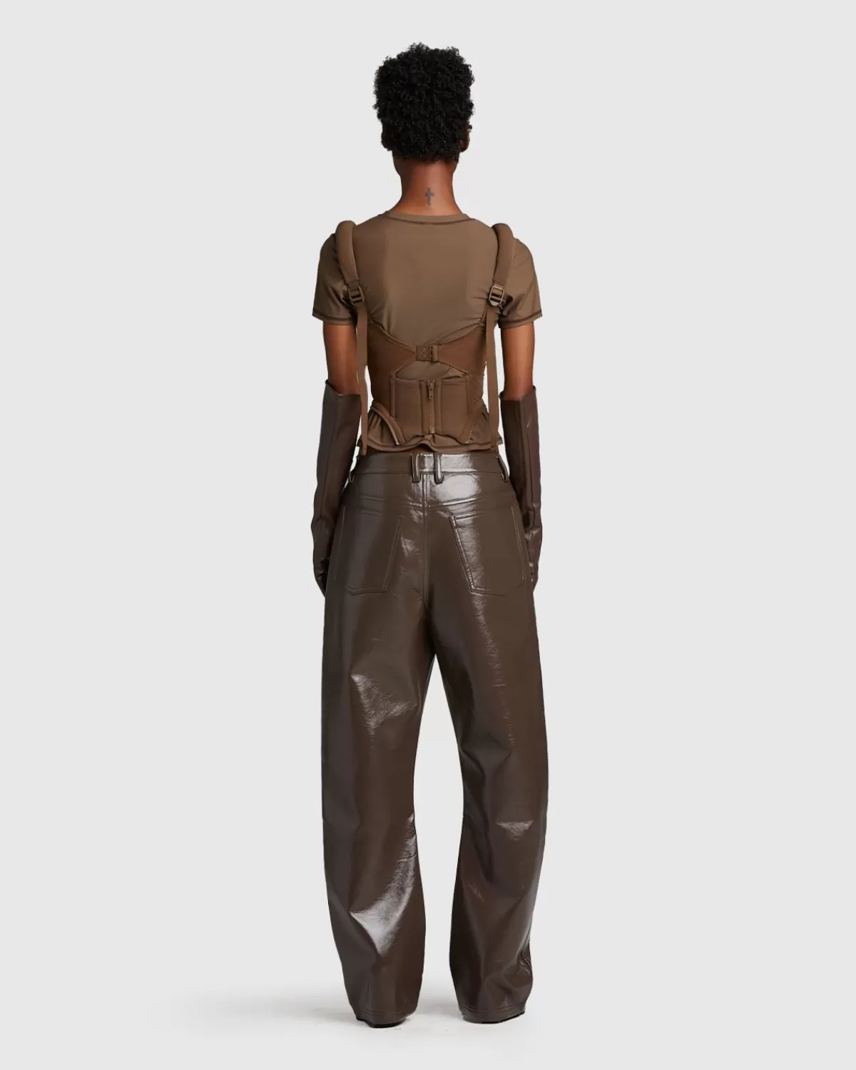 De Wet Pant Is Een Opvallend Kledingstuk Van Whole Studios, Dat Ons Een Kijkje Biedt In De Toekomst Van De Mode. Het Paar Heeft Een Normale Pasvorm En Wijde Pijpen En Is Gemaakt Van 100% Polyurethaanleer Voor Een Glanzende Afwerking Die Ervoor Zorgt Dat Dit Broekje In Het Oog Springt. De Stijl Heeft Een Traditionele Vijfpocketconstructie Met Zij- En Achterzakken, Evenals Een Standaard Knoopsluiting Met Ritssluiting.