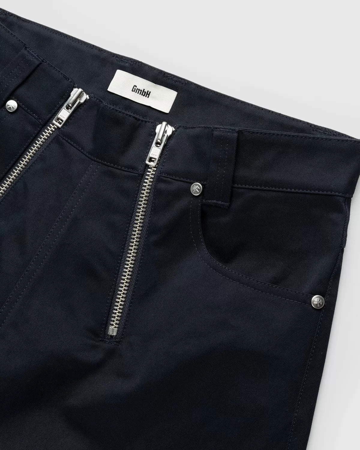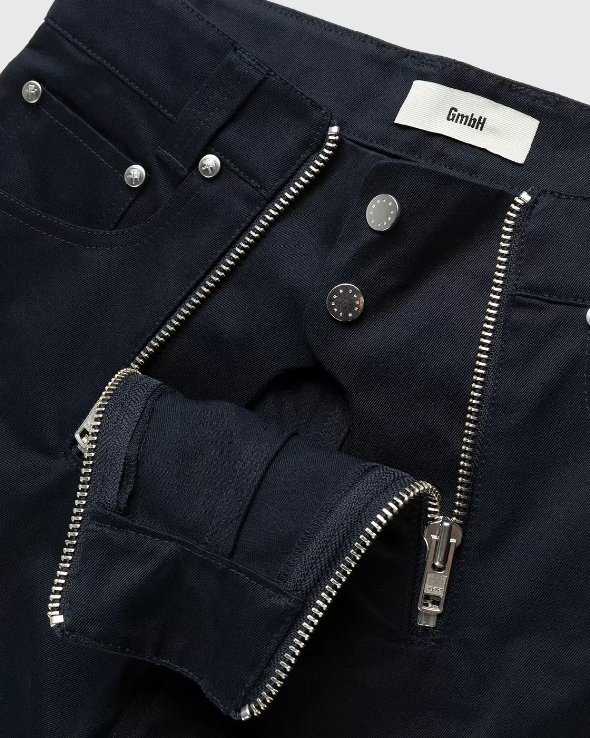 De Alvan Trouser Is Een Kenmerkende Stijl Van Gmbh, Uitgerust Met De Kenmerkende Dubbele Ritssluitingen Aan De Voorkant Van Het In Berlijn Gevestigde Merk. Dit Specifieke Paar Is Gemaakt Van 100% Biologisch Katoen En Heeft Een Klassieke 5-Pocket-Denimstijl. Maar De Alvan Is Alles Behalve De Gemiddelde Denim En Is Afgewerkt Met Een Leren Patch Van Het Gmbh-Merk Op De Tailleband Aan De Achterkant. De Broekstijl Is Unisex, Voorbereid En Klaar Om Een Speels Tintje Aan Ieders Garderobe Te Geven.