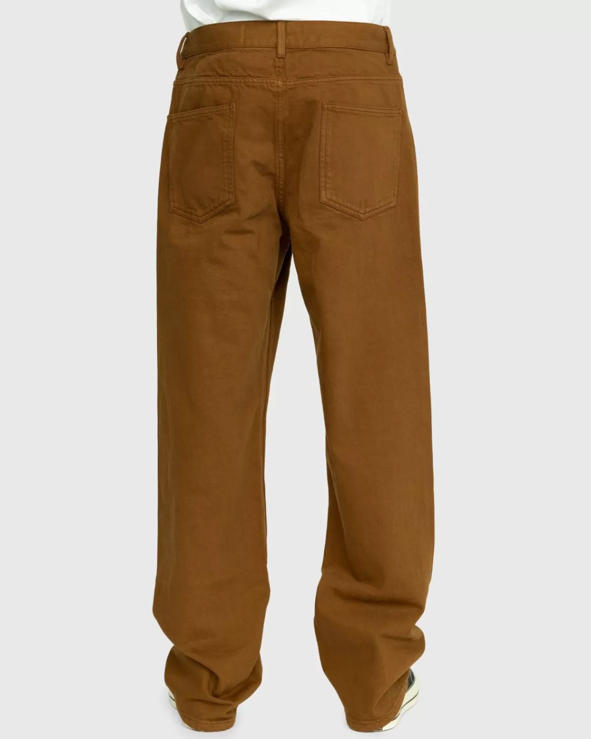 Deze Jeans, Een Kenmerkende Stof Voor Lemaire, Is Gemaakt Van Kledinggeverfd Denim Met Een Dikke, Ronde Hand. Deze Jeans Heeft Een Taps Toelopende, Middelhoge Pasvorm En Is Verhoogd Door De Constructie Die Geen Zijnaad Heeft Voor Een Minimalistischere Afwerking.