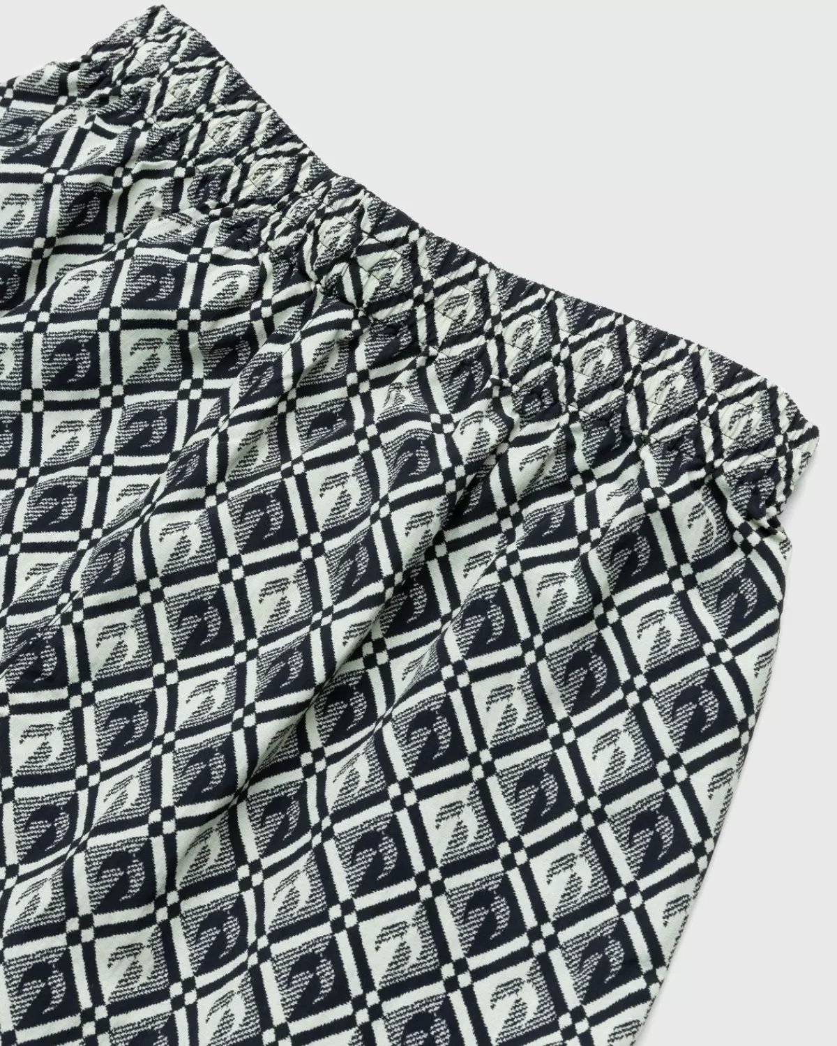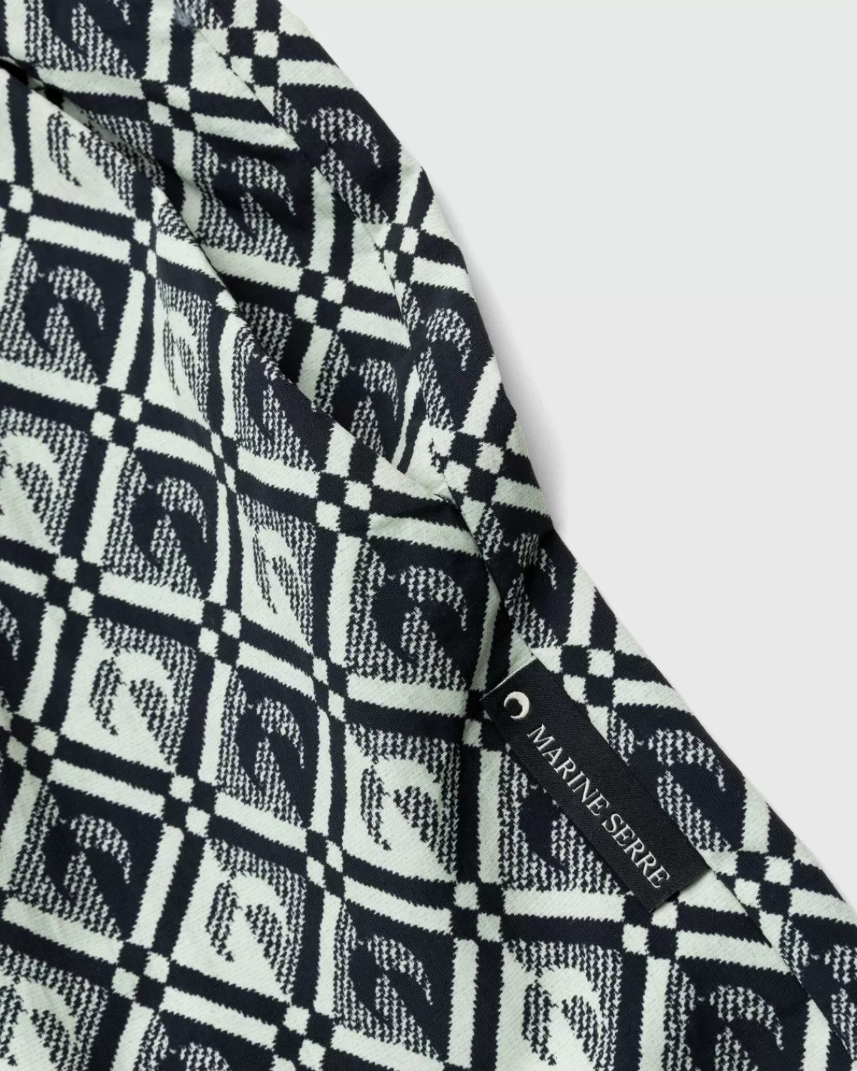 Deze Luxe Marine Serre Trainingsbroek Is Versierd Met De Kenmerkende Maandiamantprint Van Het Merk Die Onmiddellijk De Aandacht Trekt. Het Zwart-Witte Paar Heeft Een Losse Pasvorm Die Qua Maat Klopt En Is Gemaakt Van Gerecycled Nylon En Waterafstotend Moiré, Met Een Elastische Tailleband Voor Optimaal Comfort. De Enkelmanchetten Zijn Voorzien Van Elastische Trekkoorden Waarmee Je De Algehele Look En Pasvorm Kunt Aanpassen, Terwijl Ritsen Met Maanvormige Studs Dienen Als Subtiele Ontwerpversiering. De Moon Diamant Trainingsbroek Heeft Een Unisex-Stijl En Kan Zowel Casual Als Casual Worden Gedragen, Zodat Hij Geschikt Is Voor Alle Soorten Gelegenheden.
