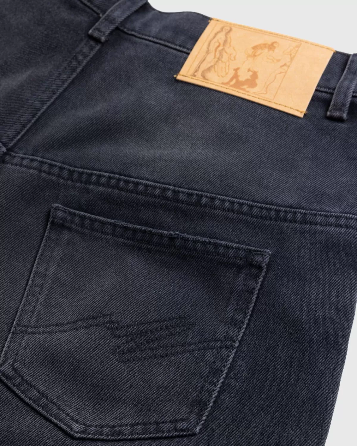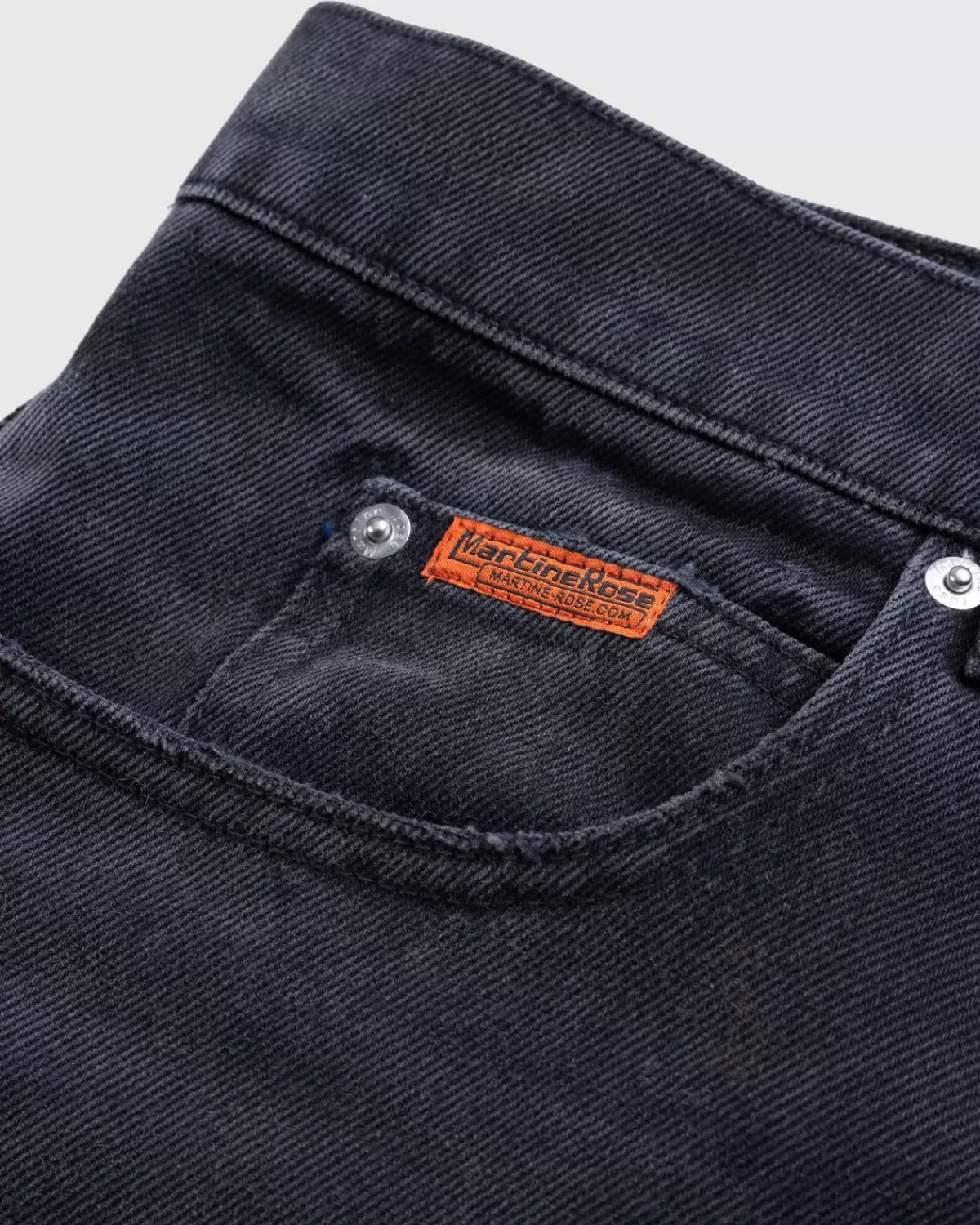 De Wide Leg Jean Van Martine Rose Komt Dit Seizoen Uit In Wat Het Merk Een Cowboy Wash Noemt. Zoals De Naam Al Aangeeft, Is Het Paar Gesneden Voor Een Pasvorm Met Wijde Pijpen En Een Traditionele Vijfpocketconstructie. Details Zijn Onder Meer De Knoopsluiting, Riemlussen In De Taille En Een Logopatch Op De Achterkant Van Het Silhouet.