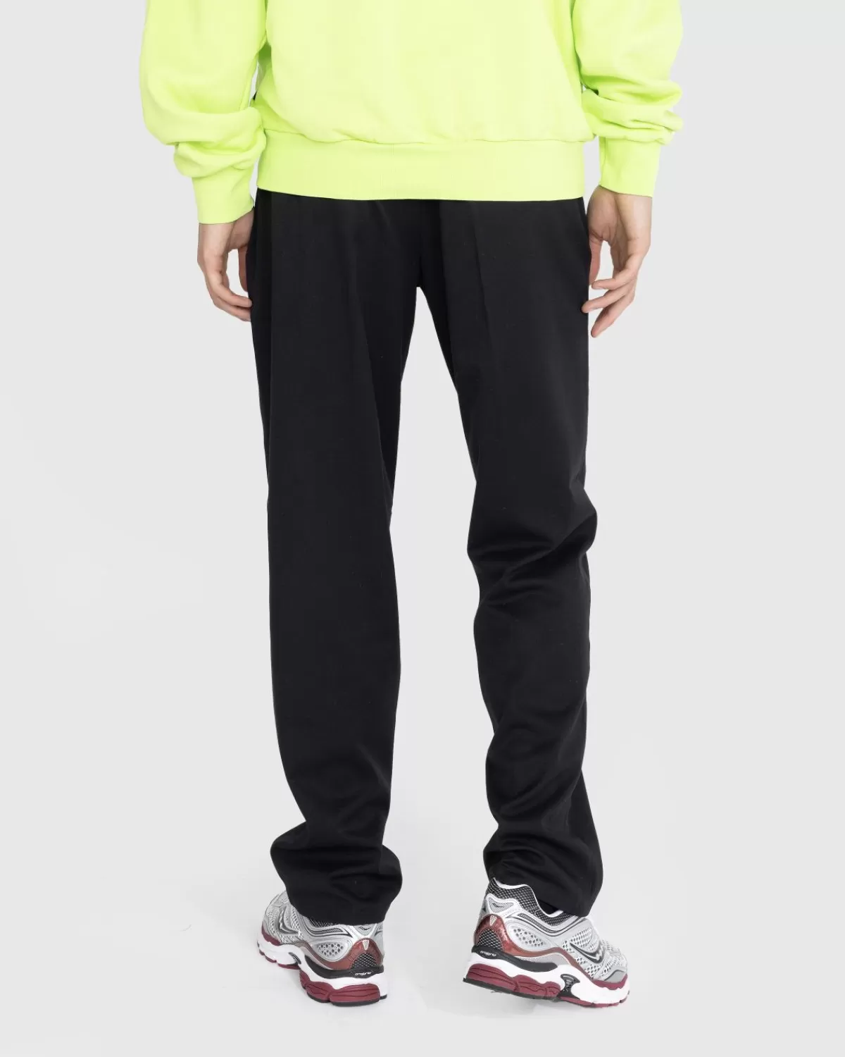 The Profile Is De Versie Van Noon Goons Op De Klassieke Zwarte Geklede Broek. Het Paar Is Gemaakt Van Een Mix Van Polyester En Rayon En Heeft Een Relaxte Pasvorm, Afgewerkt Met Een In Het Midden Geperste Vouw. Extra Ontwerpdetails Zijn Onder Meer Een Blinde Haak- En Oogsluiting, Riemlussen, Zijzakken En Paspelzakken Aan De Achterkant Met Knoopsluiting. Een Klein Noon Goons-Label Is Aan De Achterkant Van De Tailleband Verwerkt Om De Stijl Subtiel Te Markeren.