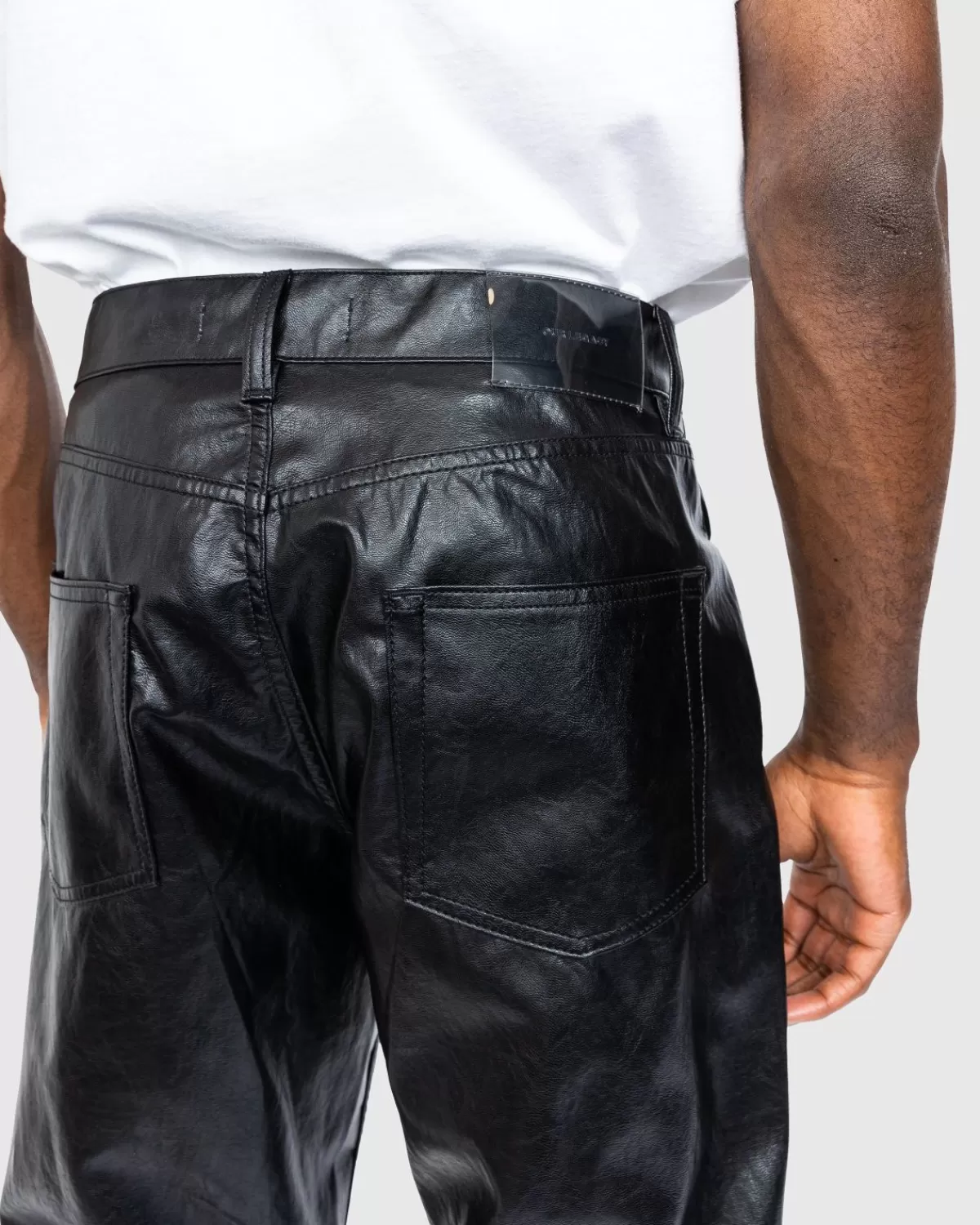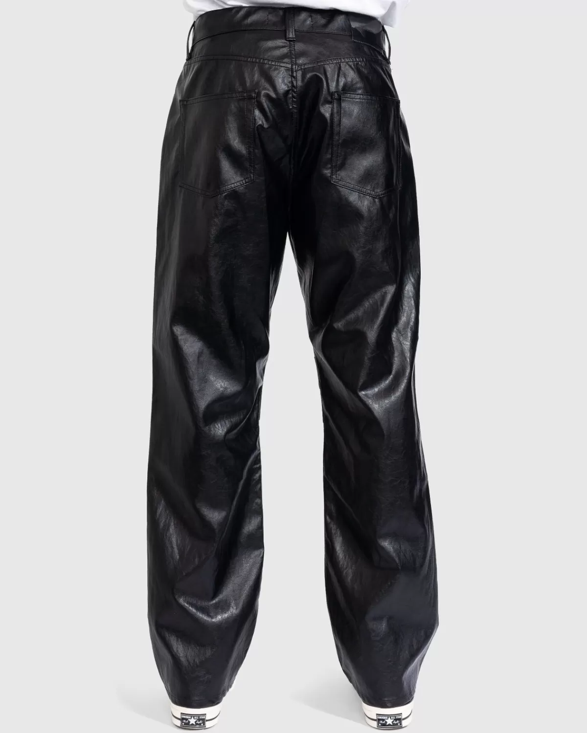 Een Edgy, Moto-Geïnspireerde Stijl, De Formal Moto Cut Trouser Is Uitgevoerd In Een Chinese Kunstleerstof Met Een Opvallende Glans. Het Onopvallende Geheel Zwarte Paar Heeft Een Relaxte, Losse Pasvorm Met Een Lichte Tapsheid En Hogere Taille, Waardoor Een Tijdloze Look Ontstaat Die Zeker Nog Jaren Zal Blijven Bestaan. Details Zijn Onder Meer Riemlussen, Een Ritssluiting En Vijf Zakken, Terwijl Het Silhouet Is Afgewerkt Met Een Our Legacy-Patch In Reliëf Op De Achterkant Van De Taille.