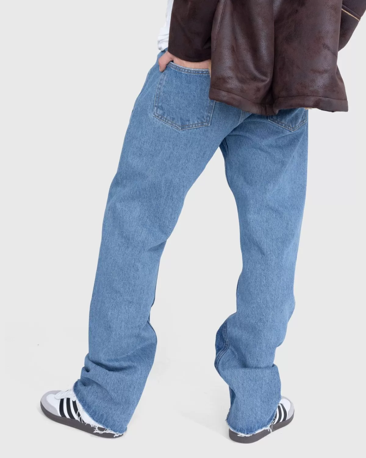 Zoals De Naam Al Doet Vermoeden, Wordt Deze Stijl Gedefinieerd Door Een Opvallende Gedraaide Beennaad. Het Paar Met Rechte Pijpen Is Gemaakt Van Een Tweekleurige 13Oz-Denim Afkomstig Uit Italië En Verder Gedetailleerd Met Een Onafgewerkte Zoom Met Franjes. De Jeans Heeft Een Traditionele Constructie Met Vijf Zakken, Een Knoopsluiting En Riemlussen In De Taille.
