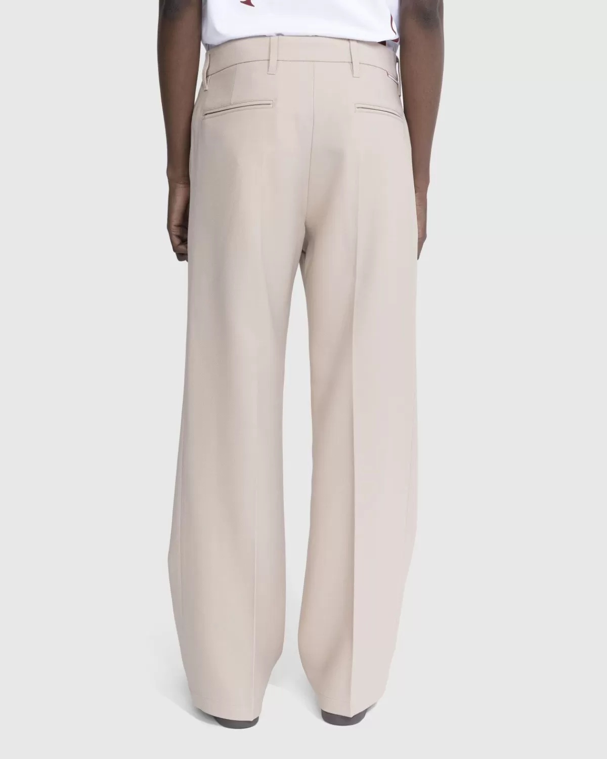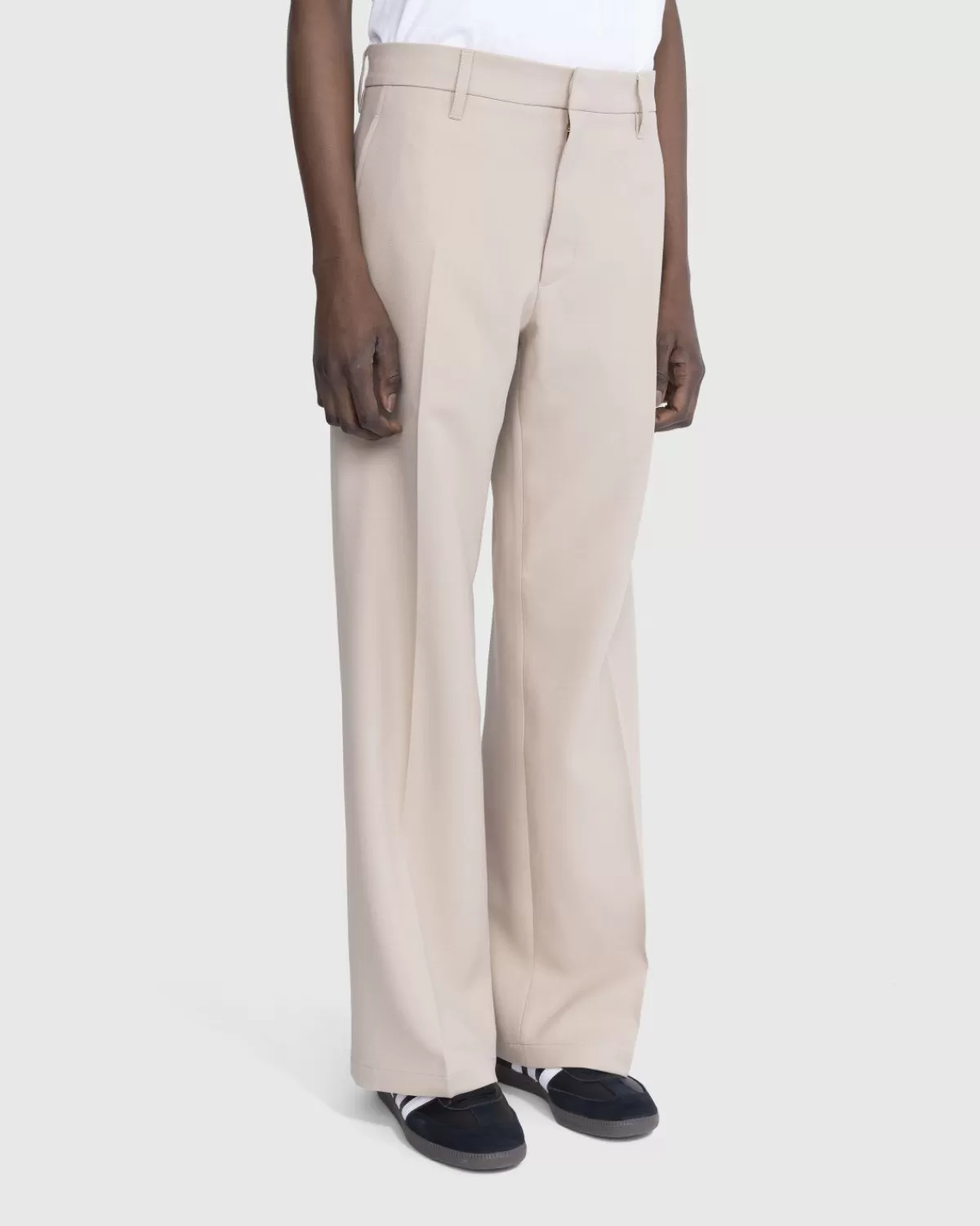 De Bootcut Trouser Is Een Lichtgewicht Geklede Broek Gemaakt Van Brits Polyester. Het Zandkleurige Paar Heeft Een Regular Fit, Brede Bootcut-Pijpen En Plooien Aan De Voor- En Achterkant, Een Verborgen Sluiting, Riemlussen In De Taille En Zakken Aan De Voor- En Achterkant. De Stijl Is Minimaal Voorzien Van Een Merklogo Met Een Klein Logolabel Achterop De Taille.