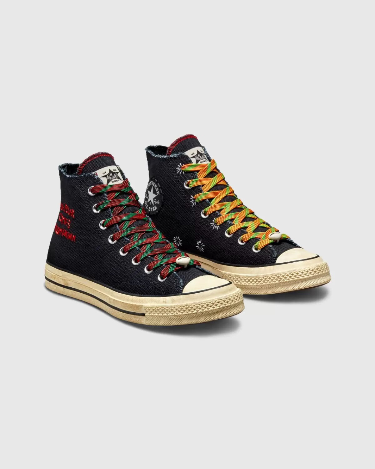 De Barriers Chuck 70, Een Gedurfde En Krachtige Uitvoering Van Een Converse-Icoon, Combineert Streetstyle En Versterkt Verhalen Over Het Ongehoorde. Deze Gezamenlijke Release Is Geïnspireerd Op The North Star, Een 19E-Eeuwse Anti-Slavernijkrant Opgericht Door Frederick Douglass. De Limited Edition Chuck 70 Is Versierd Met Geborduurde Tekst, Een Aangepaste Sterafbeelding En Co-Branded Details, Die Het Verhaal Van Twee Toonaangevende Merken Verenigen. Naast De Unieke Iconografie Is De Sneaker Verder Verfraaid Met Versleten Randen En Geborduurde Oogjes, Terwijl Hij Compleet Wordt Geleverd Met Een Drietal Polykantopties En Een Op Kaurischelpen Geïnspireerd Kantjuweel.