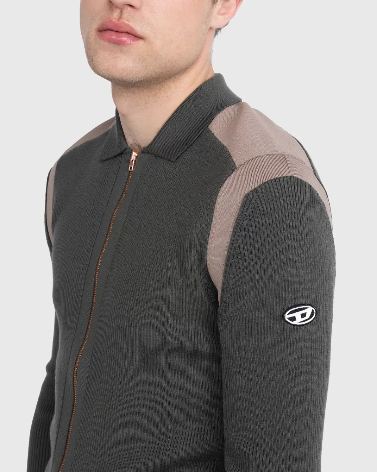 De K-Allice Is Een Nauwsluitend Gebreide Stijl Gemaakt Van Lichtgewicht Wol Met Een Geribbelde Textuur. Het Heeft Gestreepte Details Die Zich Uitstrekken Vanaf De Schouders Tot Aan De Mouwen. Dankzij De Tweewegritssluiting Kun Je De Styling Aanpassen, Aangezien Het Kledingstuk Is Afgewerkt Met Een Kleine Ovale D-Logopatch Geborduurd Op De Mouw.