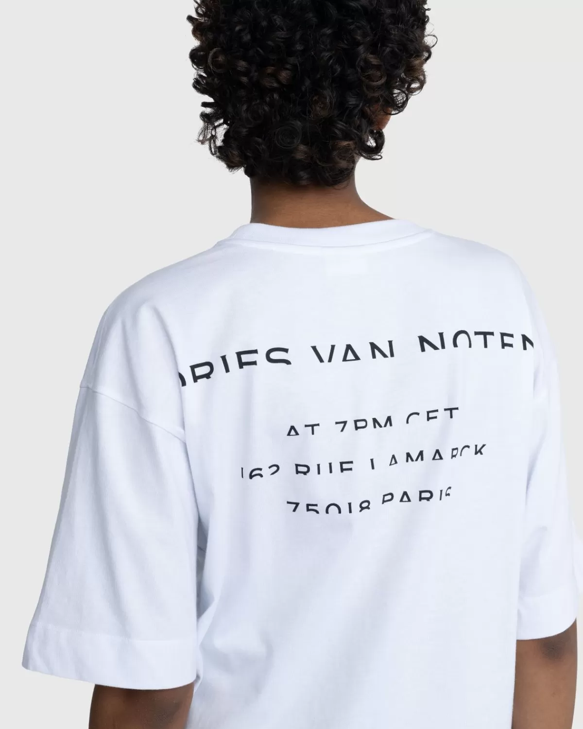 Het Heli T-Shirt Is Een Eerbetoon Aan De Catwalkcollectie Van Dries Van Noten Voor De Ss23 In Parijs. Het T-Shirt Met Korte Mouwen Is Gemaakt Van Een Zachte Katoenen Jersey En Is Bedrukt Met De Lijn- En Showinformatie Uit De Seizoensshowcase. Het Heeft Een Traditionele, Ribgebreide Ronde Hals En Een Wijde, Ontspannen Pasvorm Voor Comfortabel En Stijlvol Draagcomfort.