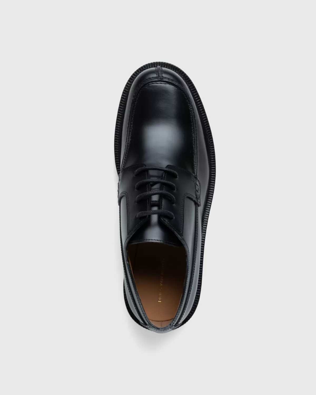 Als Sneakers Je Niet Passen, Kies Dan Voor De Patent Leather Derbies Van Dries Van Noten. De Verfijnde Stijl Is Gemaakt Van Premium Leer Aan De Bovenkant En Heeft Een Vetersluiting Met Vier Ogen, Een Ronde Neus En Een Lage Blokhak. Dat Prachtige, Gepolijste Zwarte Leer Wordt Aangevuld Met Een Dikke Zwarte Rubberen Zool Eronder, Gemaakt Met Diepe Inkepingen In Een Nauwkeurig Patroon Voor Een Superieure Grip. Een Luxe Geklede Schoen, Het Dries-Silhouet Ontbreekt Uiteraard Aan De Buitenkant, Maar Op De Binnenzool Vind Je Wel Een Folielogo. Dit Is Een Paar Dat Je Schoenenspel Zonder Sneakers Meteen Naar Een Hoger Niveau Zal Tillen.
