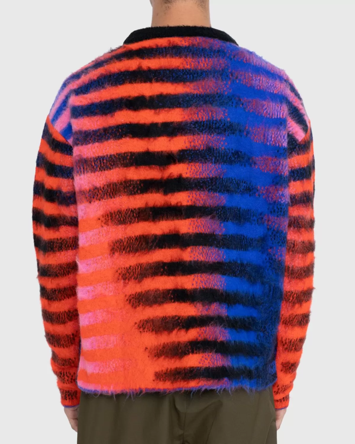 De Luxe Breikleding Van Agr Wordt Gekenmerkt Door Opvallende Kleuren En Hoogwaardige Materialen. Stijlen Zoals De Gestreepte Mohair Crewneck Putten Uit De Londense Roots Van Het Merk En De Diverse Cultuur Van De Stad, Terwijl Ze Traditionele Gebreide Thema’S Uitdagen. Deze Gezellige Trui Is Gemaakt Van Een Geborsteld Gebreide Mohair- En Acrylmix En Heeft Een Opvallend Jacquard Gestreept Patroon Dat Een Dierlijk Tintje Aan Je Garderobe Geeft. Het Kledingstuk Heeft Een Iets Oversized Pasvorm Voor Een Comfortabelere En Relaxte Look, En Is Voorzien Van Geribde Boorden Bij De Hals.