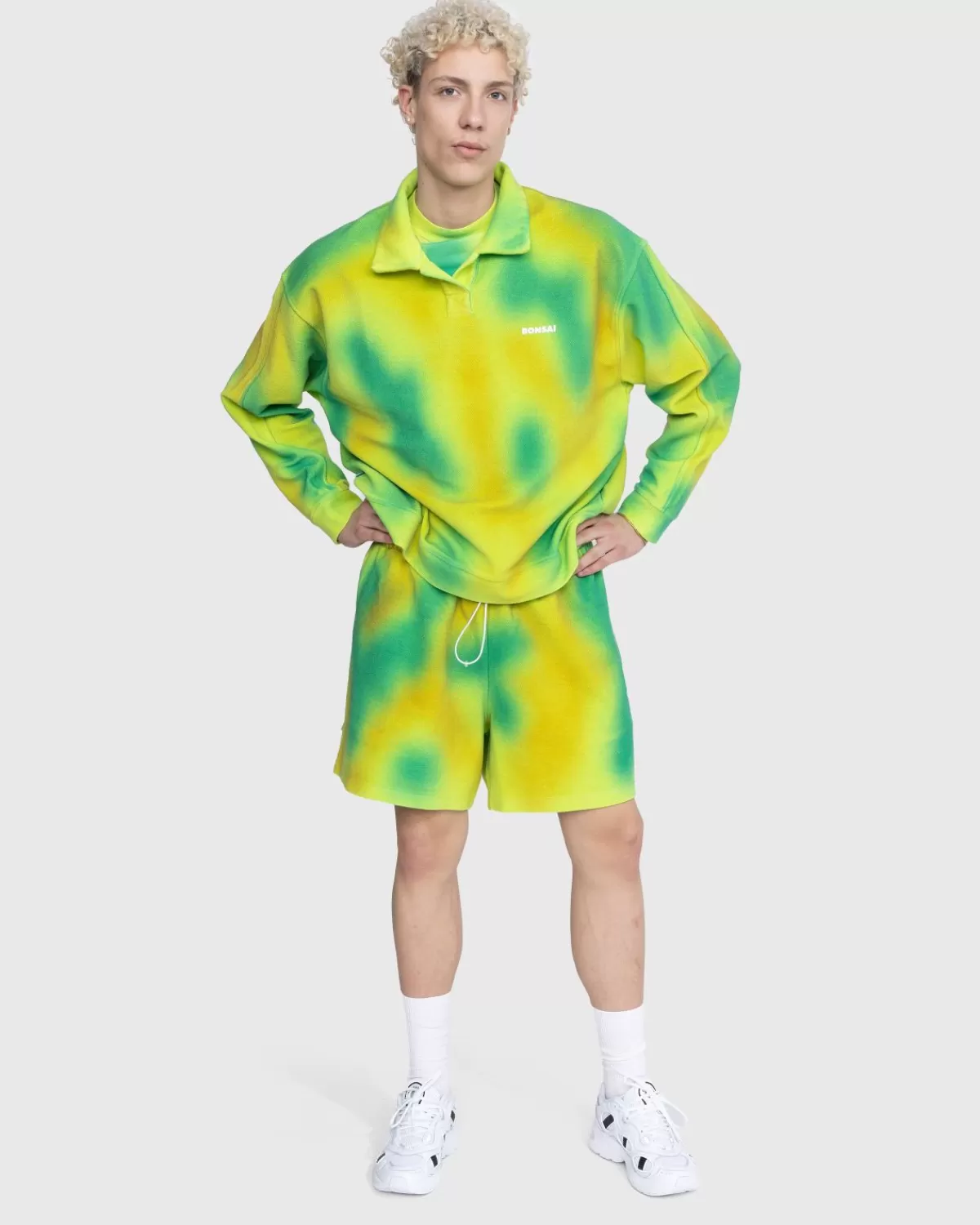 De Nieuwste Seizoenscollectie Van Bonsai Omvat Een Assortiment Spuitgeverfde Stukken Met Een Opvallend All-Over Patroon. Kledingstukken Zoals De Spray Dyed Polo Met Lange Mouwen Zijn Klaar Om Levendige Energie Aan Je Dagelijkse Looks Te Geven En Komen In Opvallende Kleurstellingen Met Minimale Branding In De Vorm Van Een Klein Gedrukt Logo Op De Borst. De Katoenen Top Heeft Een Iets Oversized, Boxy-Pasvorm Voor Comfortabel Dragen.
