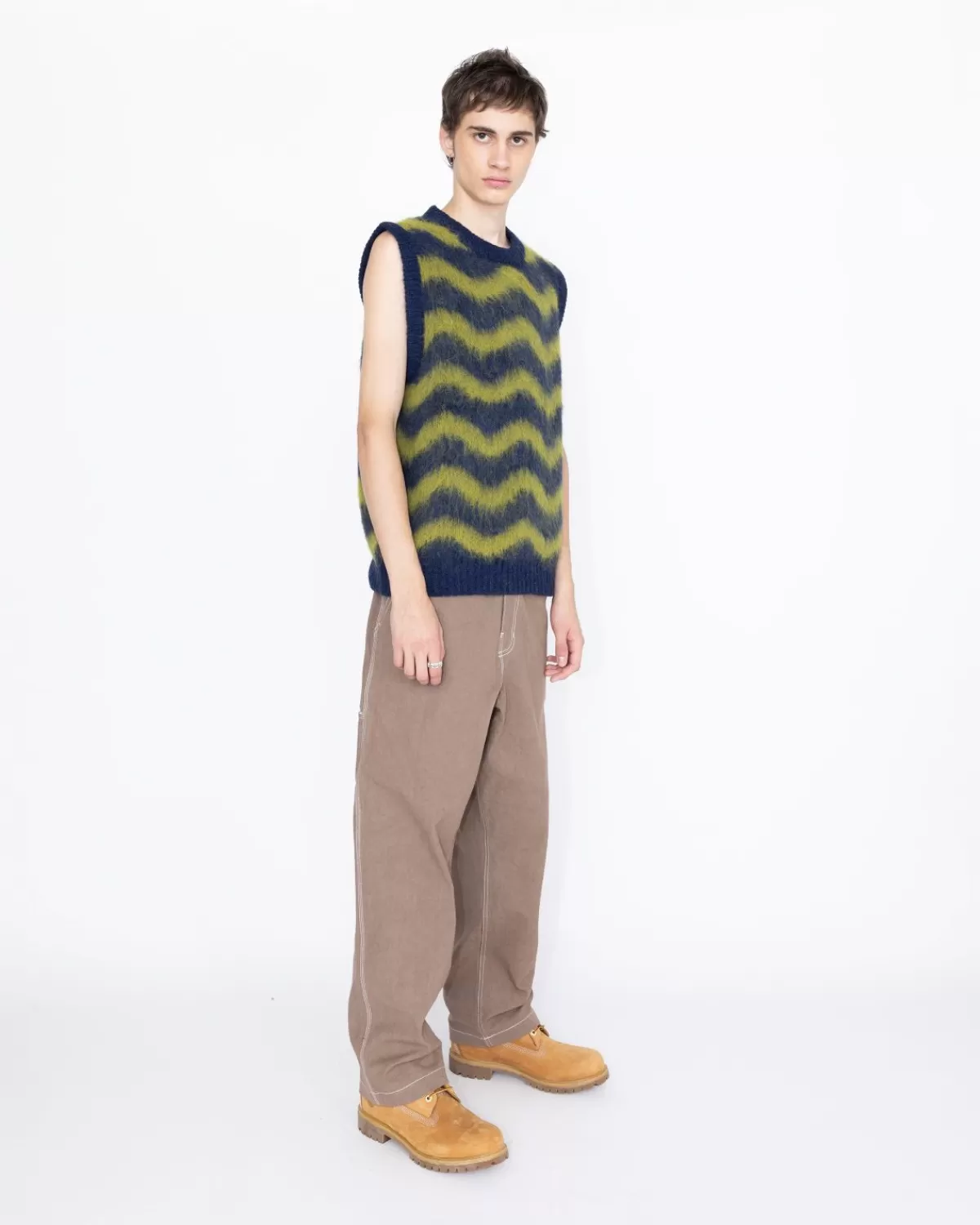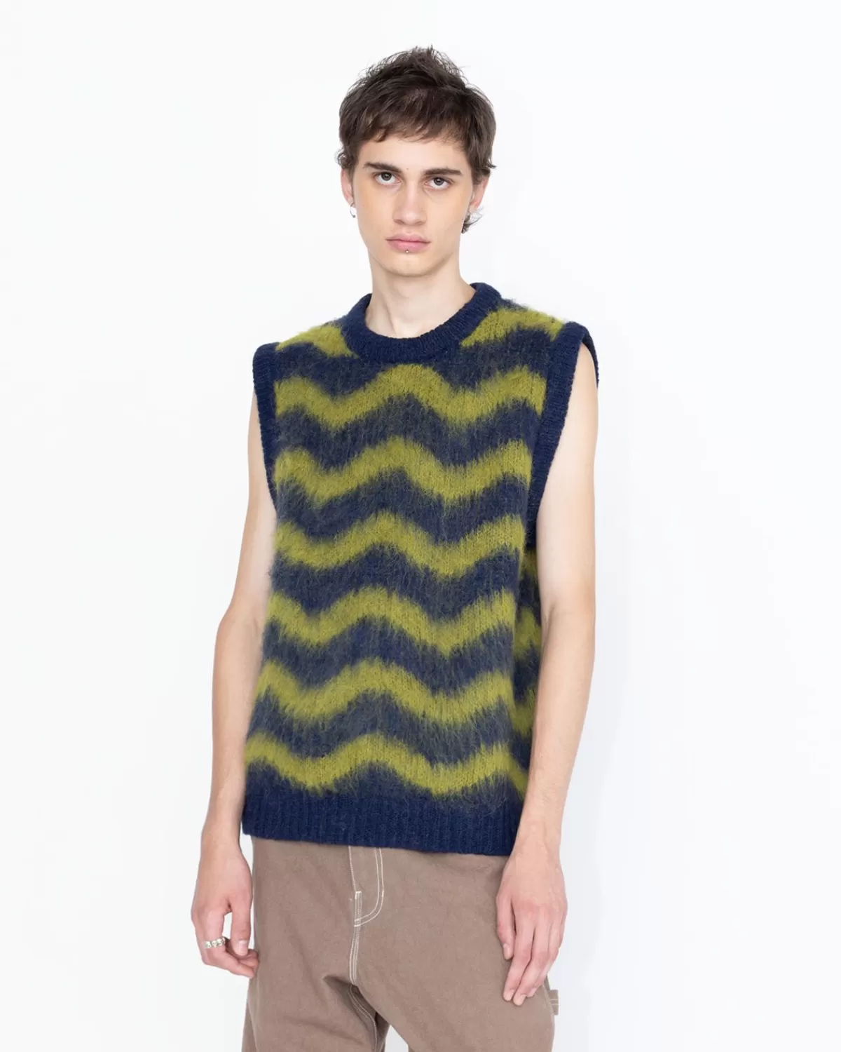 Gebreide Kleding^Highsnobiety HS05 Alpaca Fuzzy Wave Sweatervest Marine/Olijfgroen