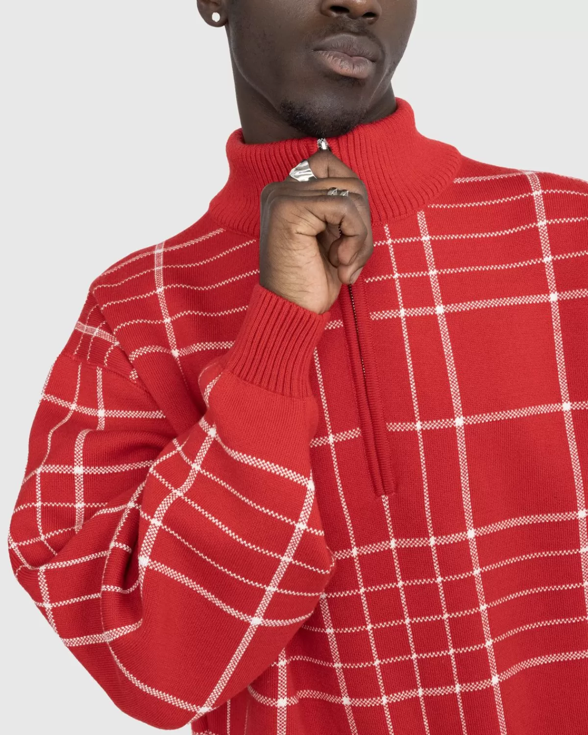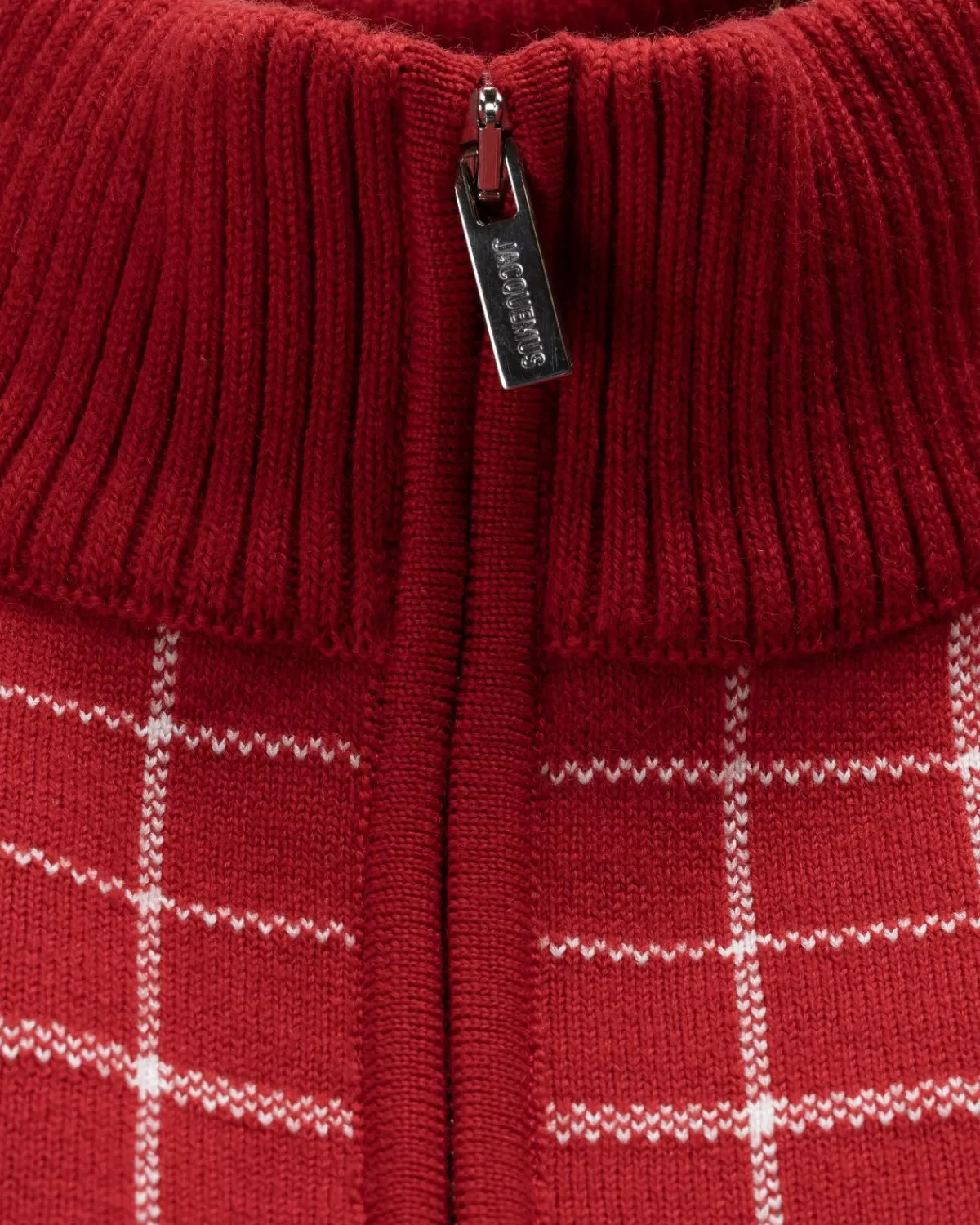 La Maille Carro Is Een High-Fashion Versie Van Het Traditionele Breisel Met Kwartrits. Het Pullover-Model Is Gemaakt Van Een Zachte Merinowol-Katoenmix En Heeft Een Contrasterend Ruitpatroon En Is Gedetailleerd Met Ribgebreide Randen En Een Gegraveerde Metalen Ritstrekker.