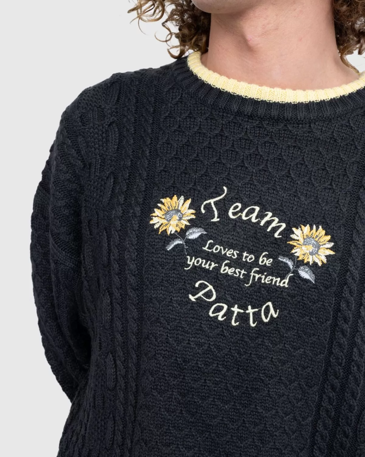 Dit Seizoen Komt Patta Door Met Een Essentiële Stijl Voor Koud Weer: De Loves You Kabelgebreide Trui. Zoals De Naam Al Zegt, Is Het Kledingstuk Voorzien Van Een Gebreide Kabel, Terwijl Het Gedetailleerd Is Met Geribde Boorden Aan De Ronde Hals, Manchetten En Zoom. Op De Voorkant Van De Trui Is Een Seizoensgebonden Team Patta-Logo Te Zien Om Het Kledingstuk Uiteindelijk Te Definiëren.