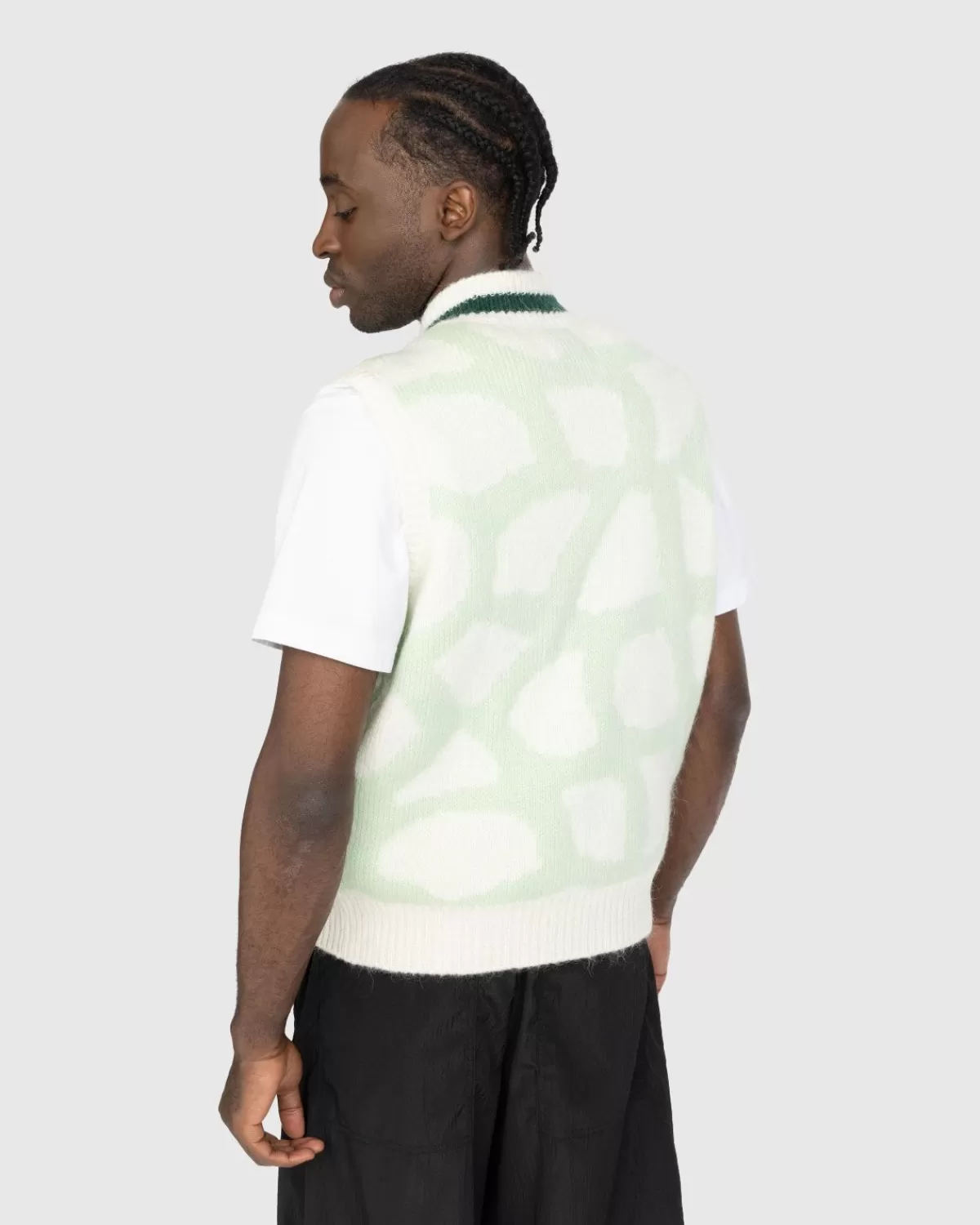 Het Herbivore Vest Is Een Op Prep Geïnspireerde Stijl Van Blondey Mccoy En Zijn Merk Thames. Het Kledingstuk Is Gebreid Van Een Zware Mix Van Polyacryl, Mohair En Nylon En Komt Tot Leven Dankzij Een All-Over Jacquard Grafisch Patroon. Het Kroonlogo Van Het Label Is Op De Voorkant Van Het Vest Geborduurd Om Het Silhouet Te Benadrukken, Dat Gedetailleerd Is Met Ribgebreide Randen Aan De V-Hals, Armen En Zoom.