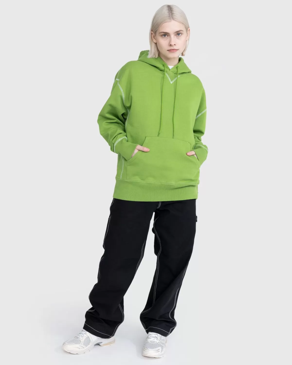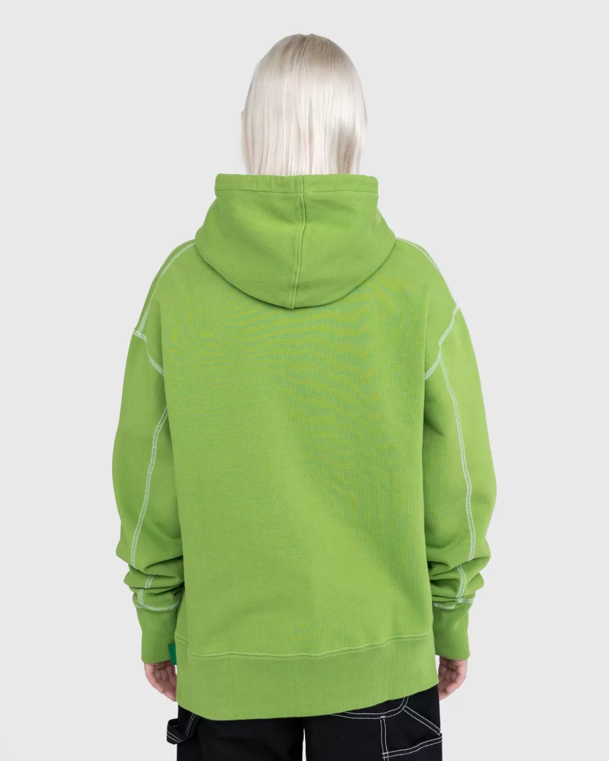 De Contrast Stitch Hoodie Is Gemaakt Van Slijtvast Fleece En Is Onze Variant Op Een Basisgarderobe. Het Heeft Traditionele Designelementen, Zoals Een Verstelbare Capuchon Met Trekkoord, Een V-Vouw Bij De Hals En Een Buidelzak Aan De Voorkant, En Is Extra Benadrukt Door Witte Contrasterende Stiksels En Dikke Geribde Boorden. Het Model Met Capuchon Heeft Een Iets Oversized, Boxy-Pasvorm. De Branding Is Minimaal Van Opzet, Geïmplementeerd Als Een Klein Highsnobiety-Vlaglabel.