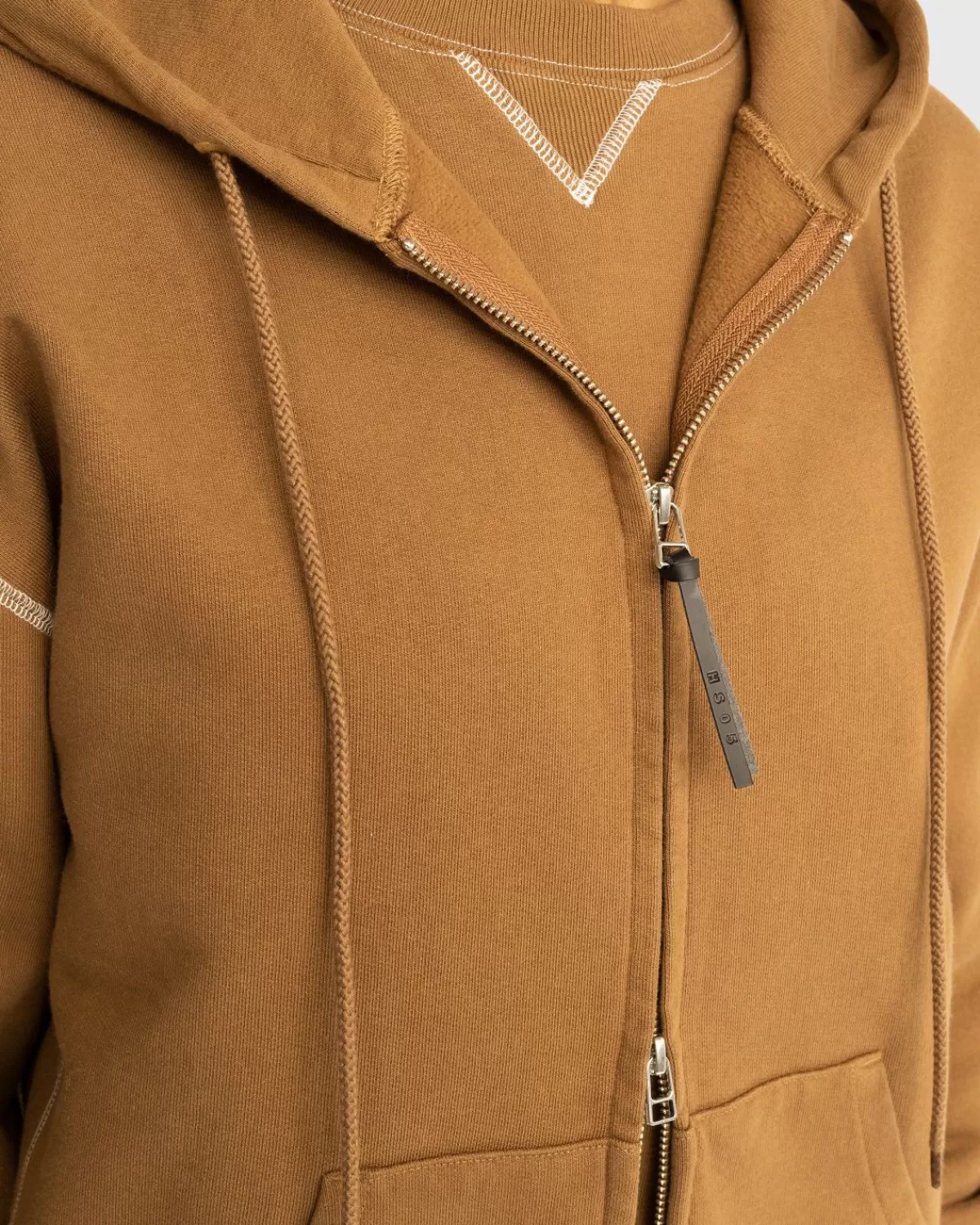 Highsnobiety Fleece Hoodie Met Contrasterende Stiksels En Rits Bruin Fashion