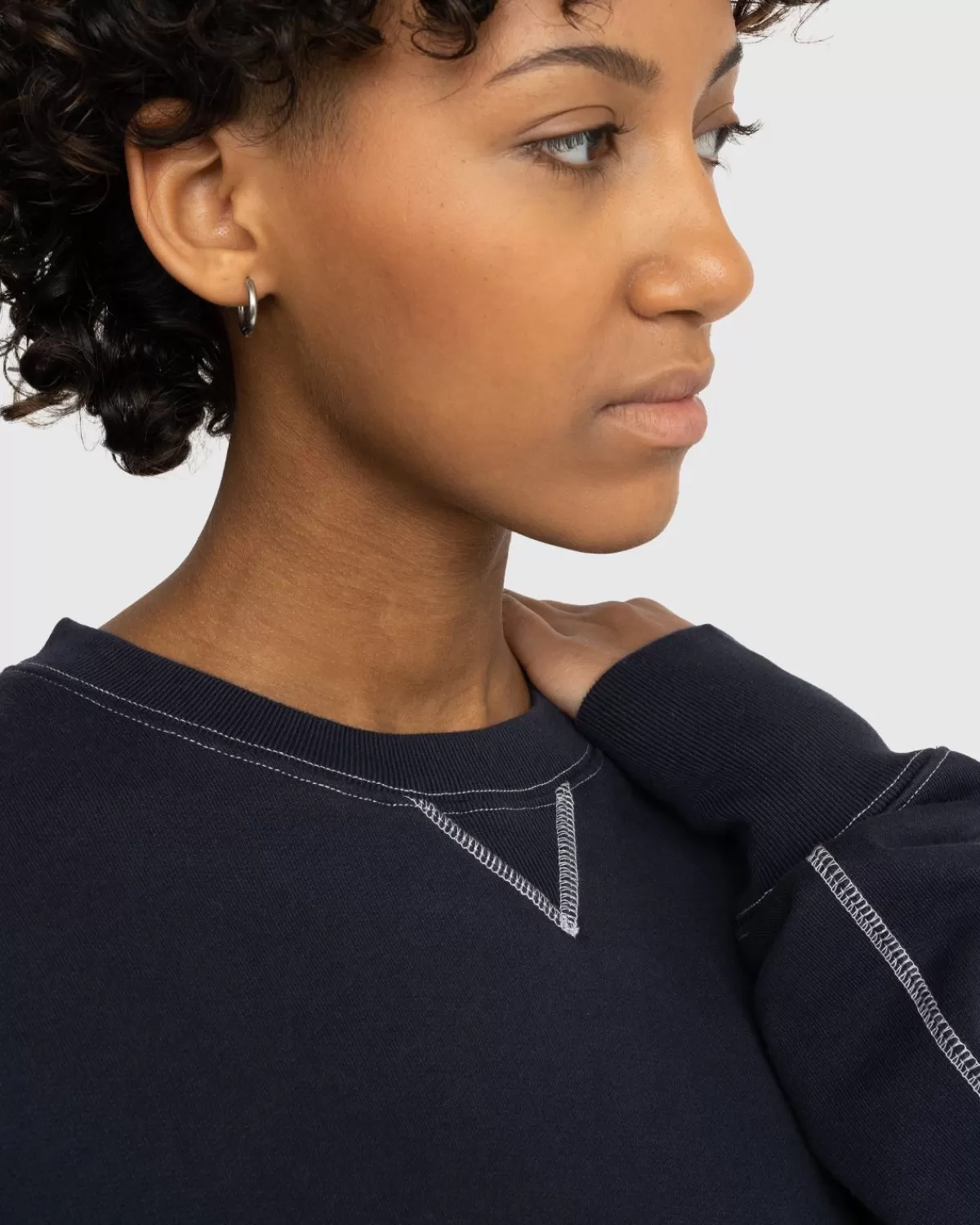 De Contrast Stitch Crew Is Gemaakt Van Slijtvast Fleecemateriaal En Is Onze Variant Op Een Kledingstuk. Het Is Voorzien Van Traditionele Designelementen, Zoals Een V-Kruisje Bij De Hals, En Is Extra Benadrukt Door Witte Contrasterende Stiksels En Dikke Geribde Boorden. Het Model Met Ronde Hals Heeft Een Iets Oversized, Boxy-Pasvorm. De Branding Is Minimaal Van Opzet, Geïmplementeerd Als Een Klein Highsnobiety-Vlaglabel.
