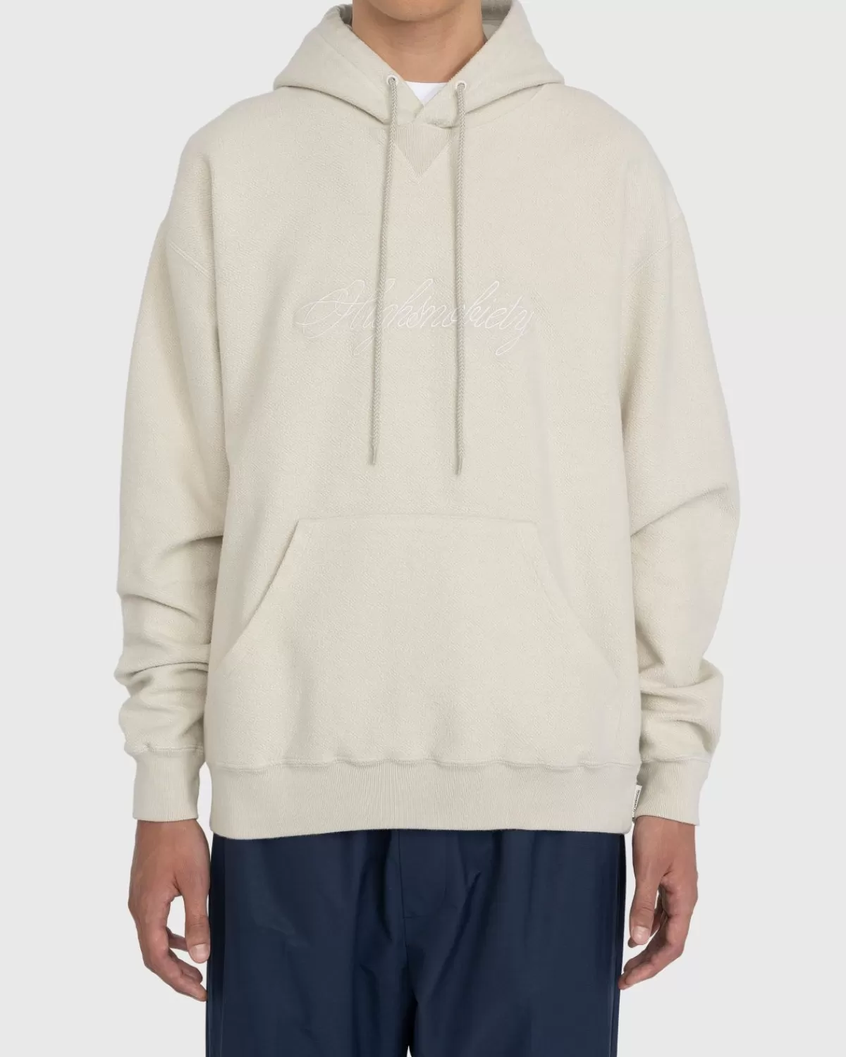 Highsnobiety Scriptlogo Omgekeerde Fleece Hoodie Beige Clearance